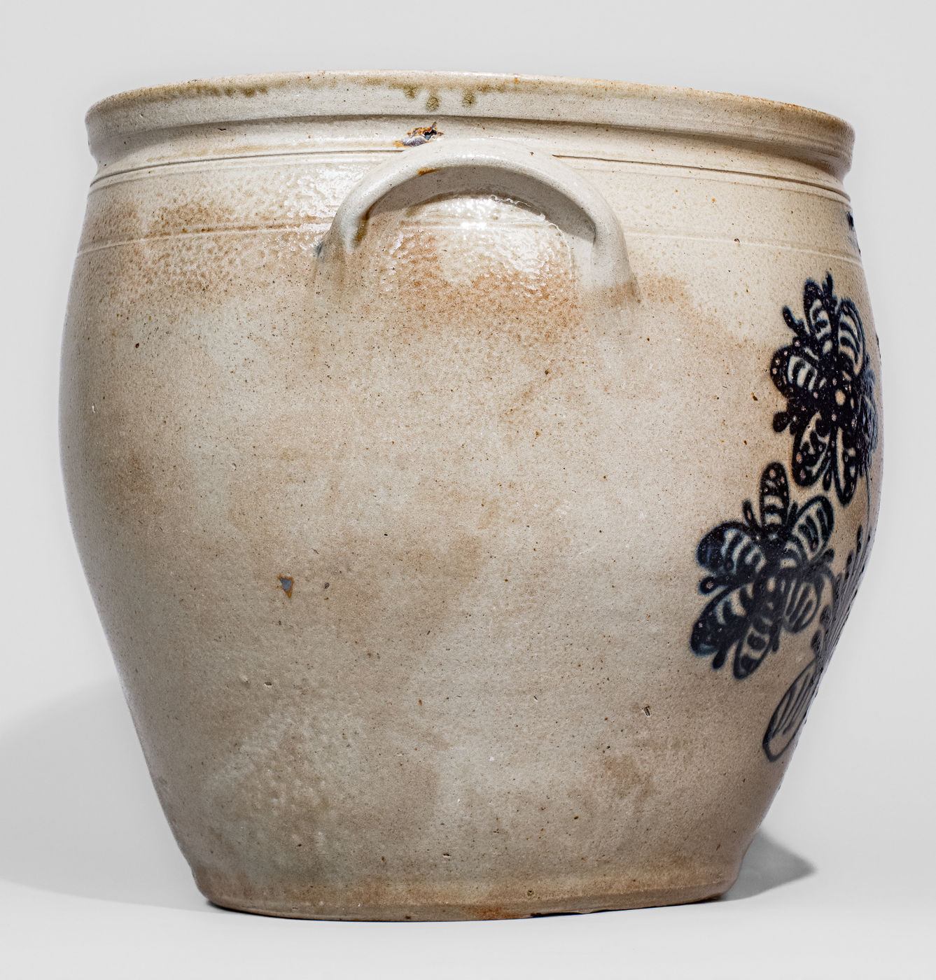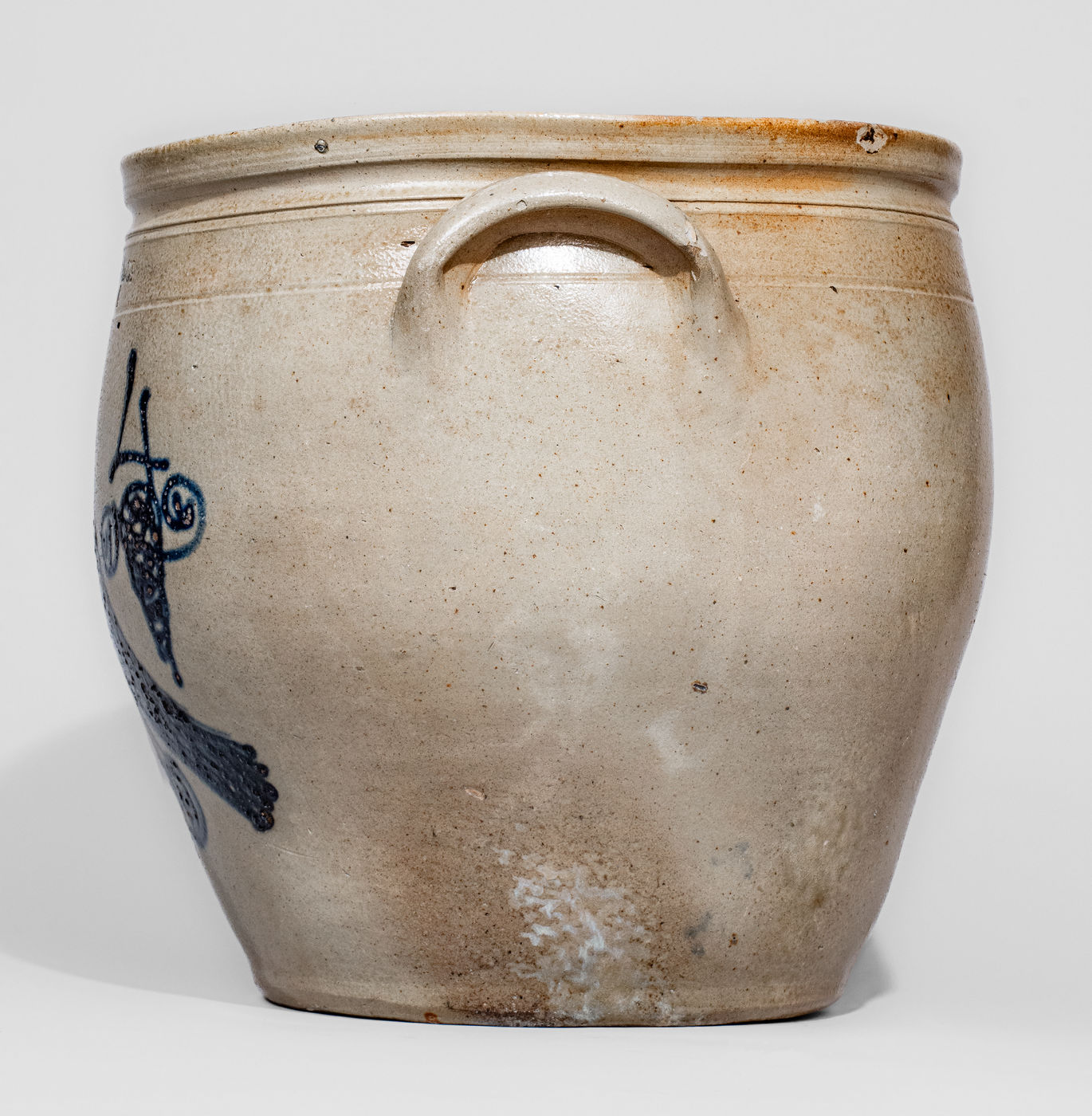 ×Exceptional W.H. FARRAR & CO. / GEDDES, N.Y. Four-Gallon Stoneware Jar w/ Elaborate Bird and Floral Designs