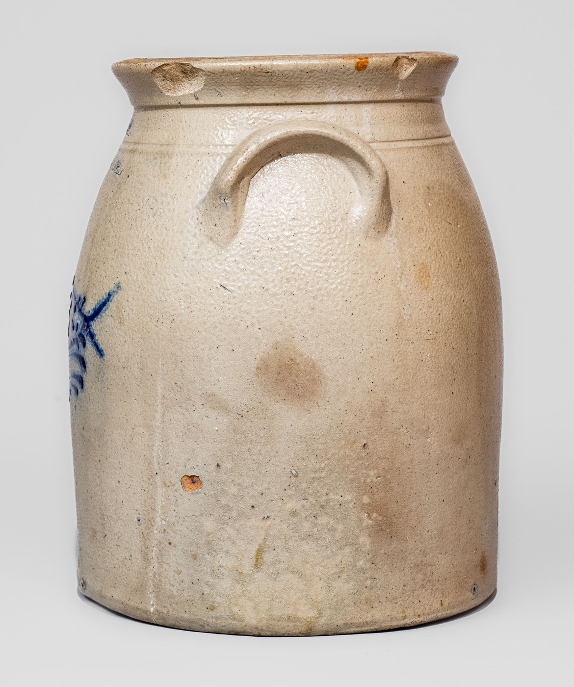 ×Scarce W. HART / OGDENSBURGH, NY Stoneware Jar w/ Cobalt Fish Decoration