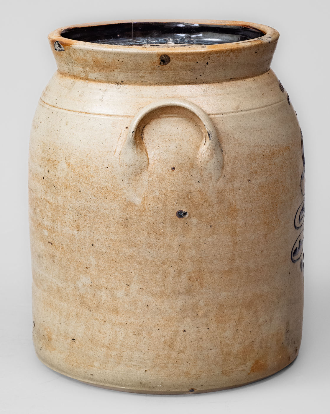 ×WM E. WARNER. / WEST TROY Stoneware Jar w/ Cobalt Flowering Urn Decoration