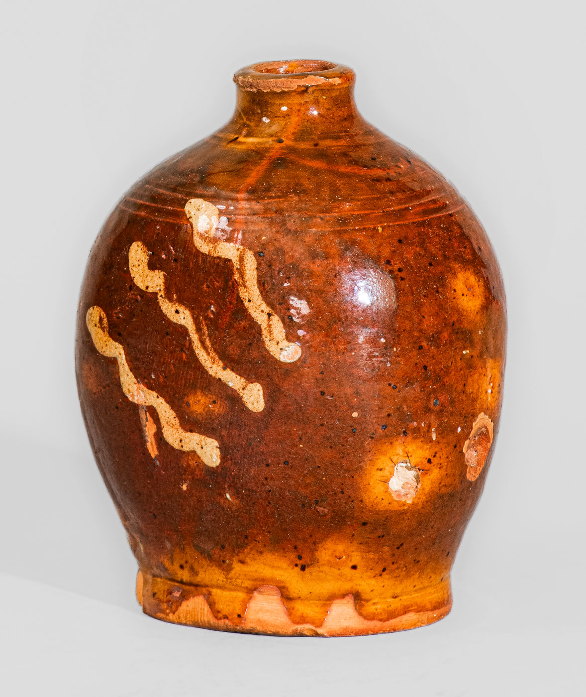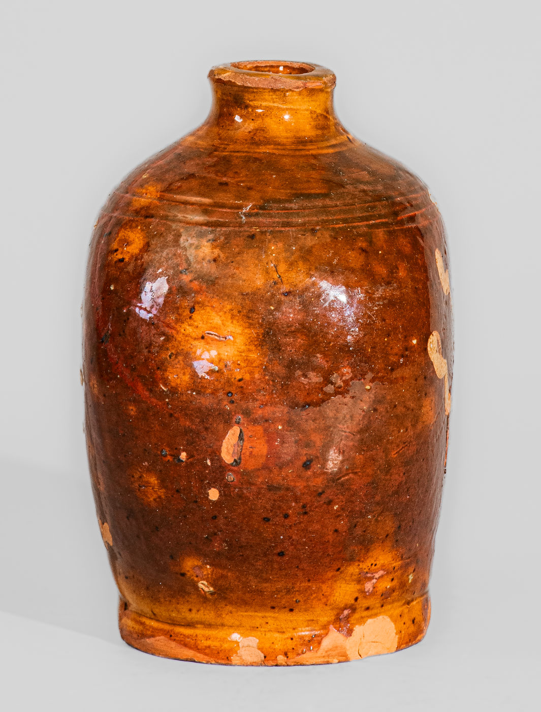 ×Very Rare 18th Century New England Redware Flask, possibly Charlestown, Mass.