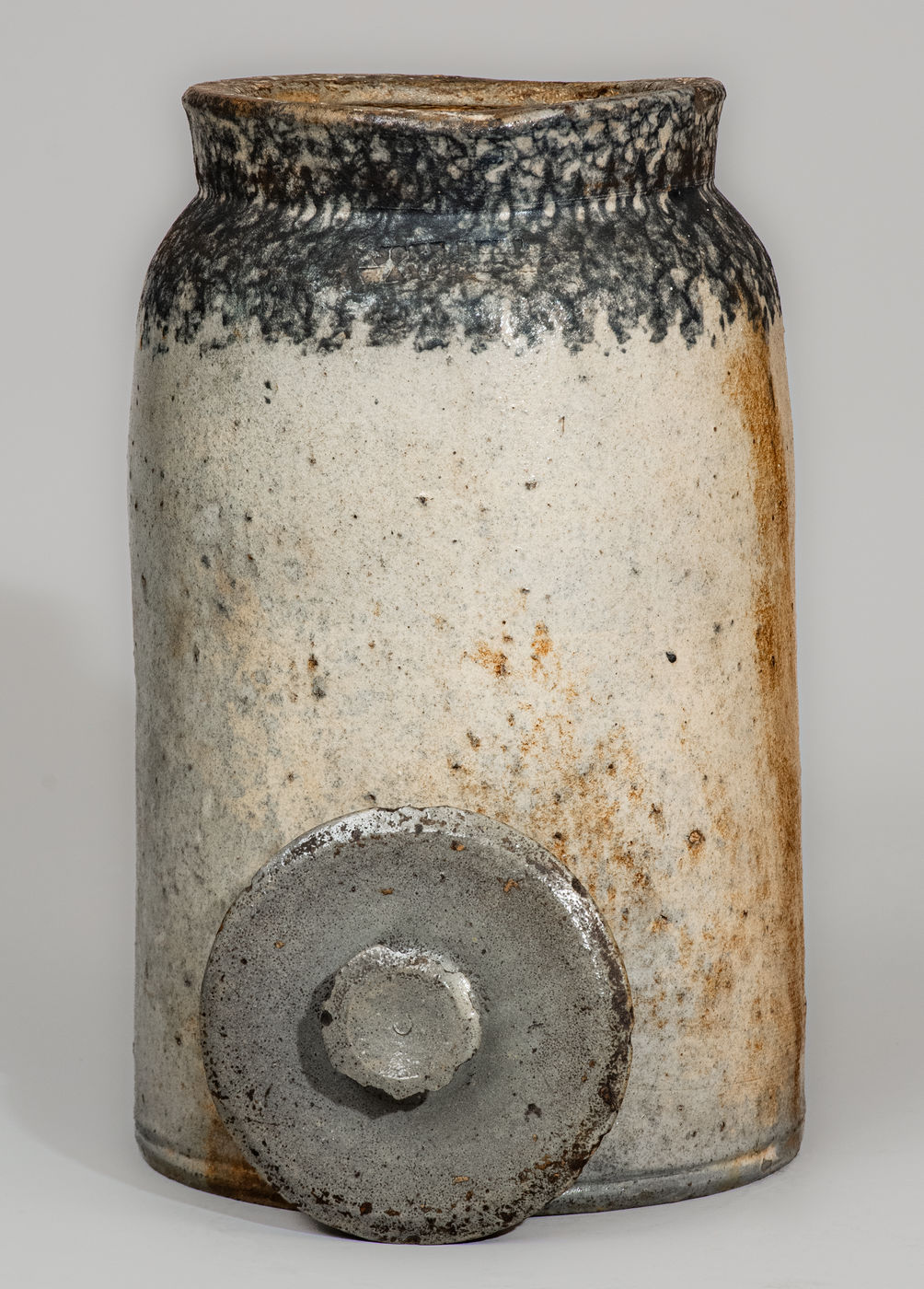 ×Large-Sized JOHN BELL / WAYNESBORO Lidded Stoneware Canning Jar