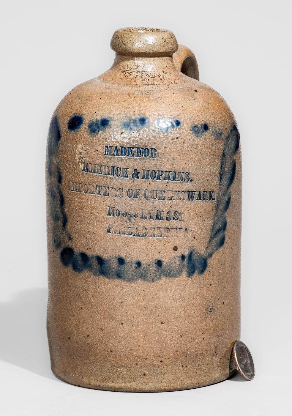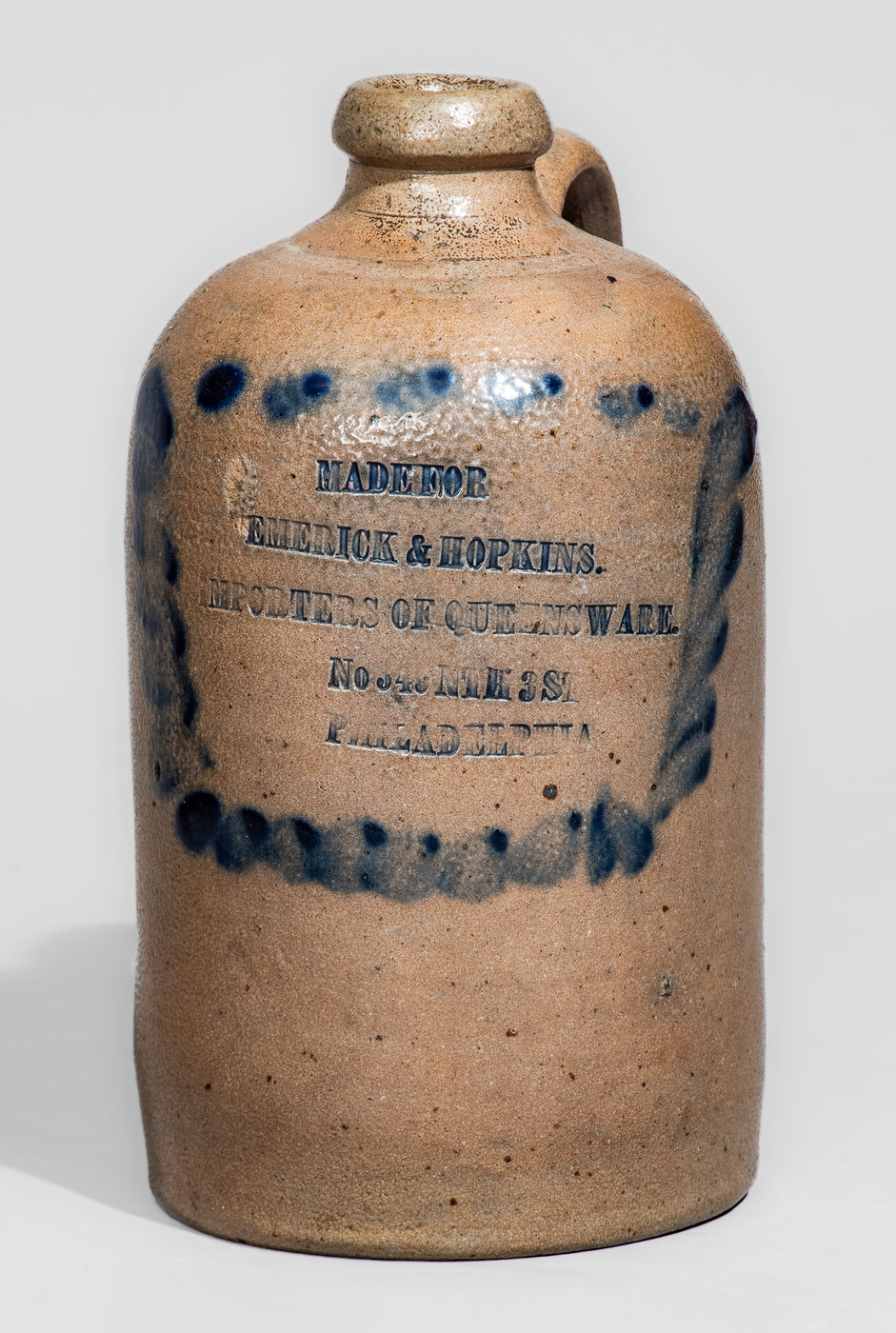 ×Small-Sized Philadelphia Advertising Jug, attrib. Richard C. Remmey Pottery, Philadelphia, PA