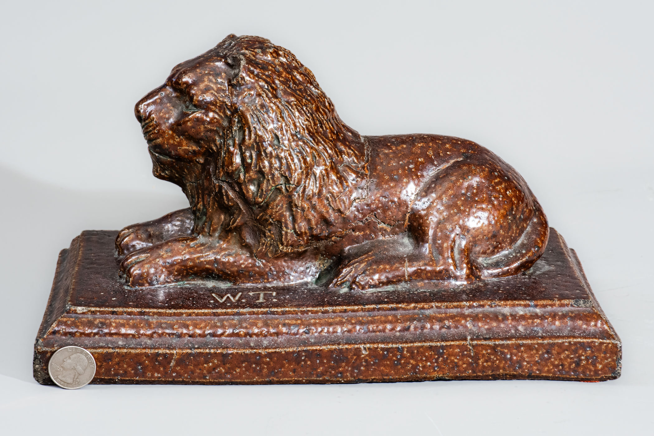 ×Ohio Sewer Tile Lion Doorstop, Inscribed "W.T.," late 19th century