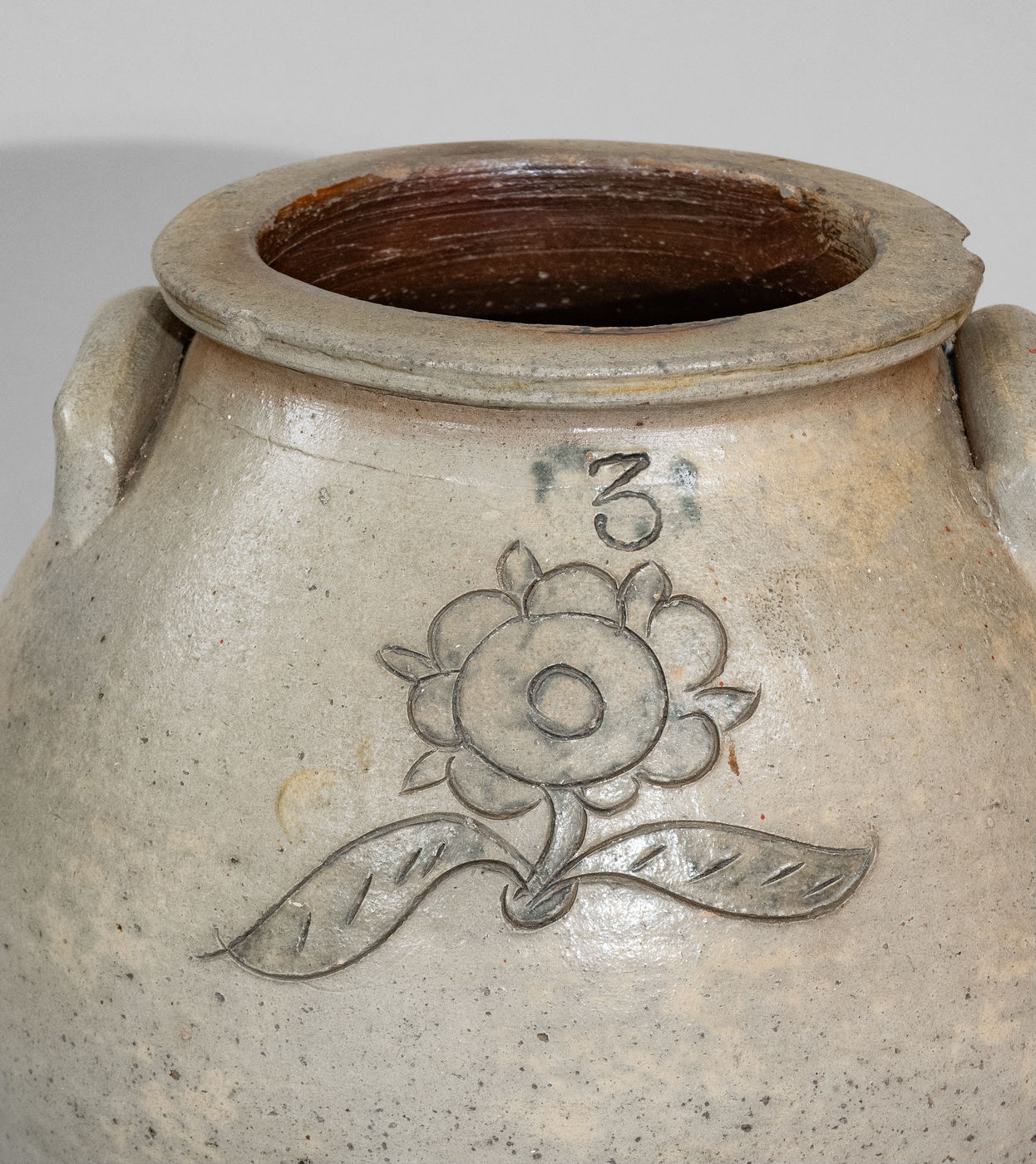×Attrib. Thomas Wilbur, Zanesville, Ohio Three-Gallon Stoneware Jar w/ Incised Decoration, c1825