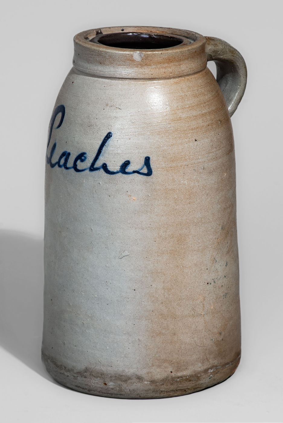 ×Rare "Peaches" Stoneware Handled Canning Jar, probably Thompson Pottery, Morgantown, WV