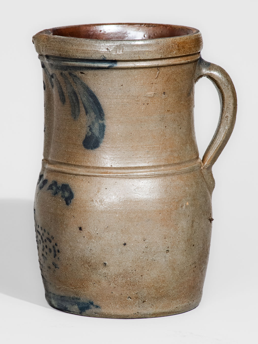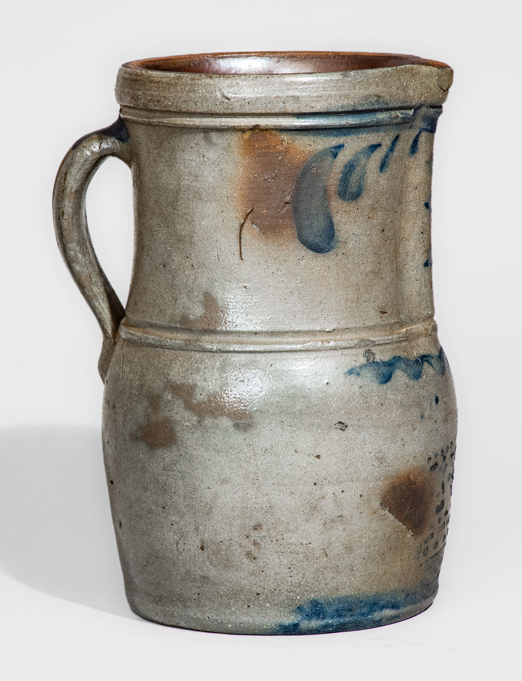 ×Rare Half-Gallon Western Pennsylvania Stoneware Pitcher w/ Stenciled Crown Motif