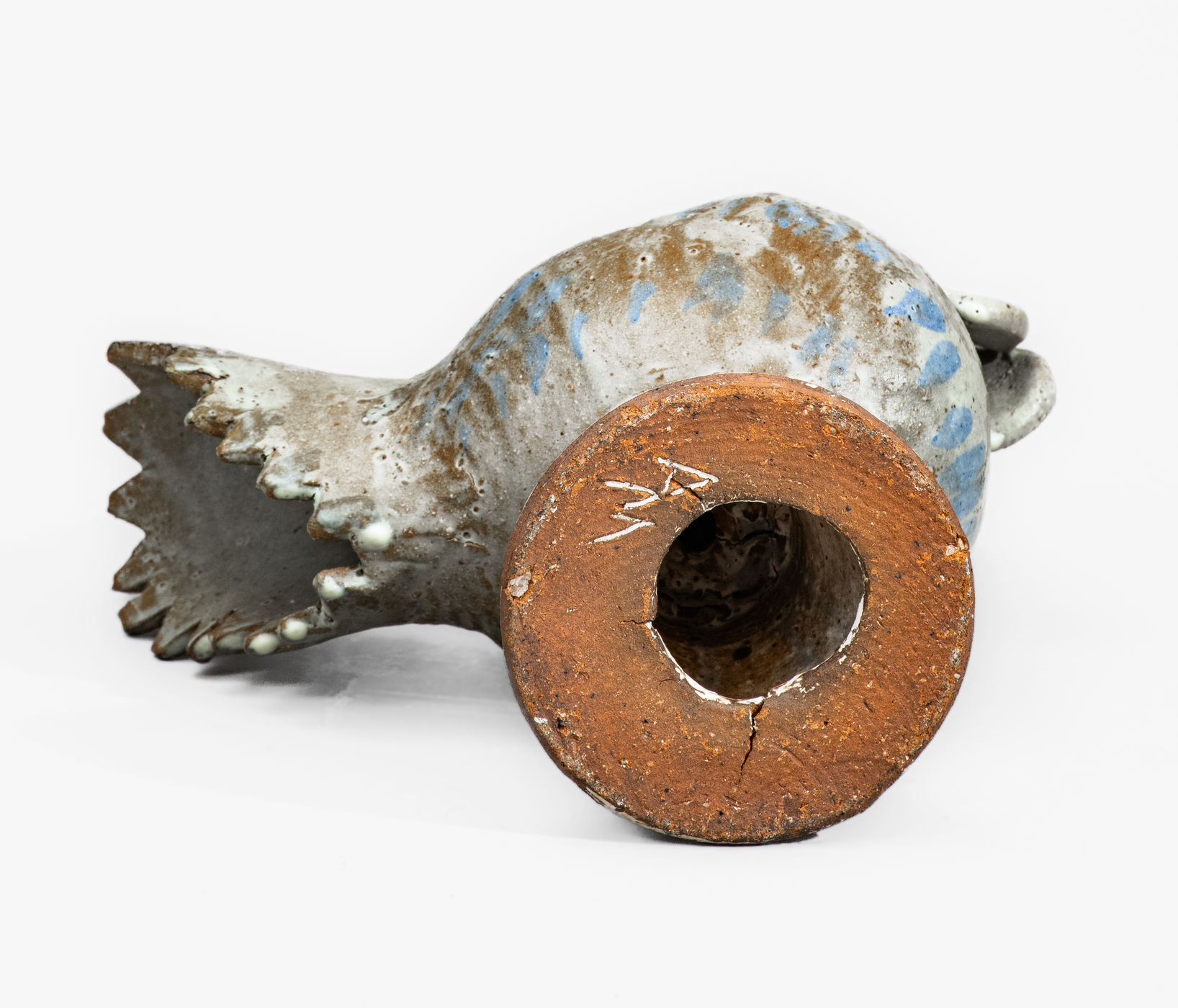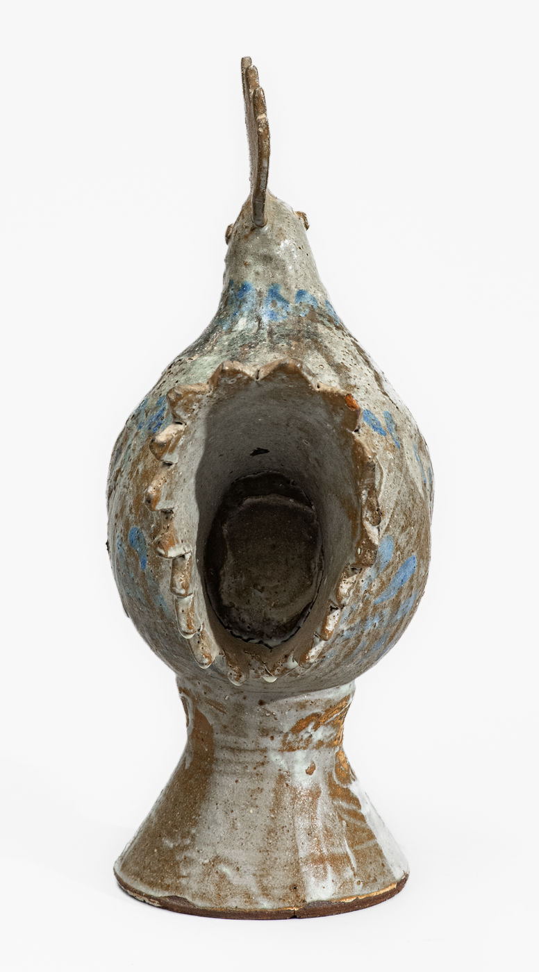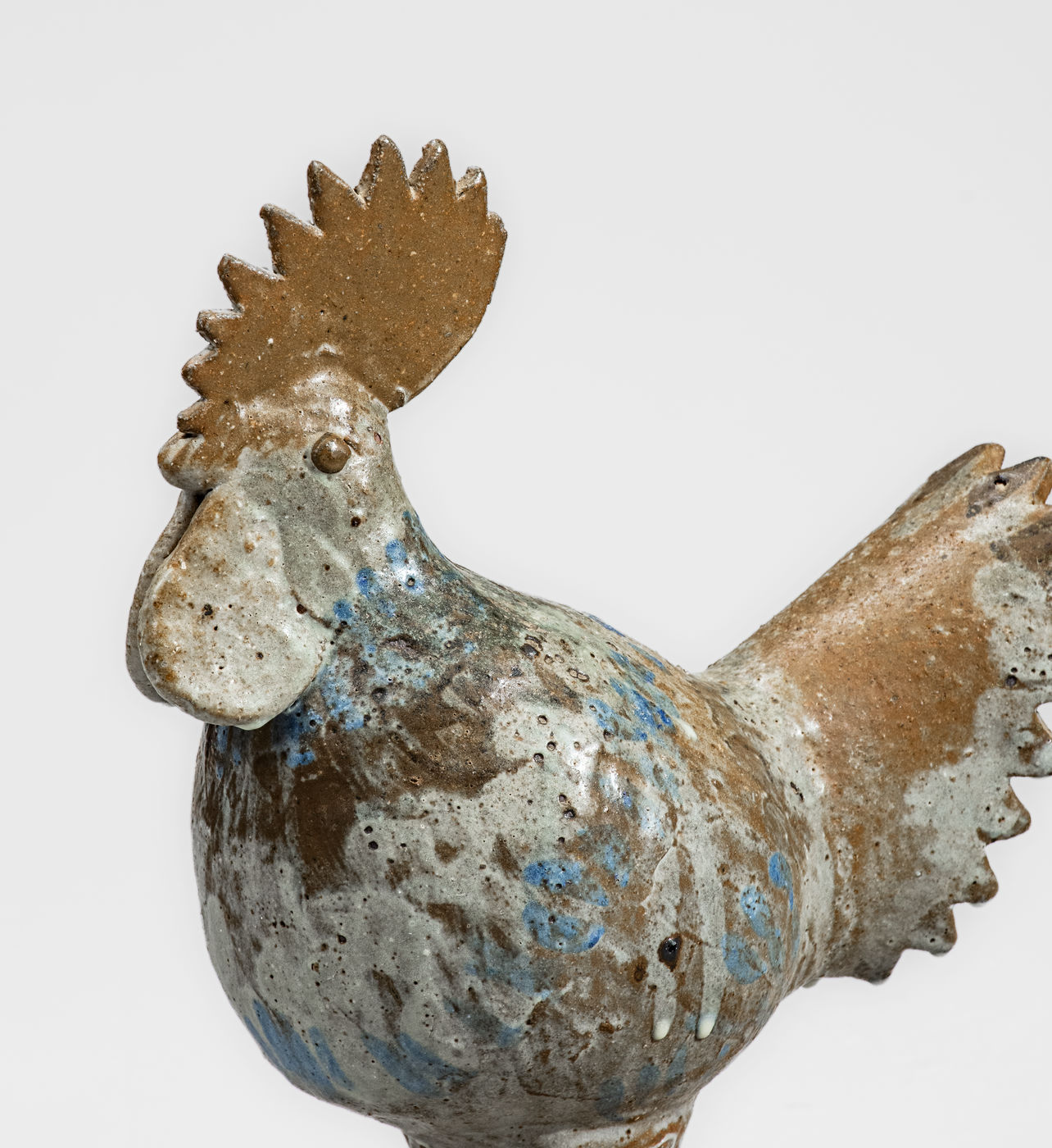 ×Rare AM (Arie Meaders) Stoneware Rooster w/ Blue Slip Decoration, circa 1956-69