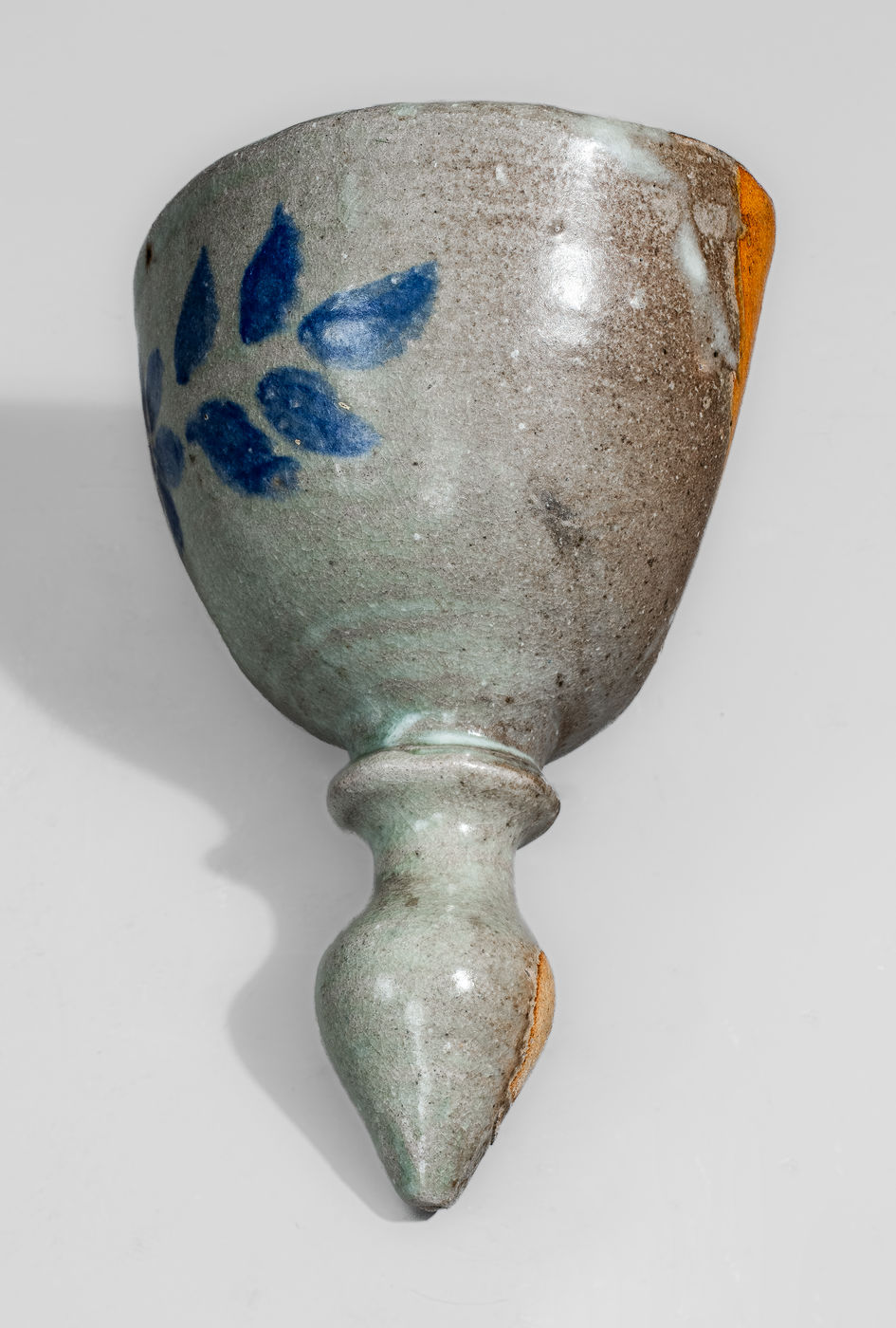 ×Rare Stoneware Wall Pocket w/ Blue-Slip Floral Decoration, attrib. Arie Meaders, Cleveland, GA