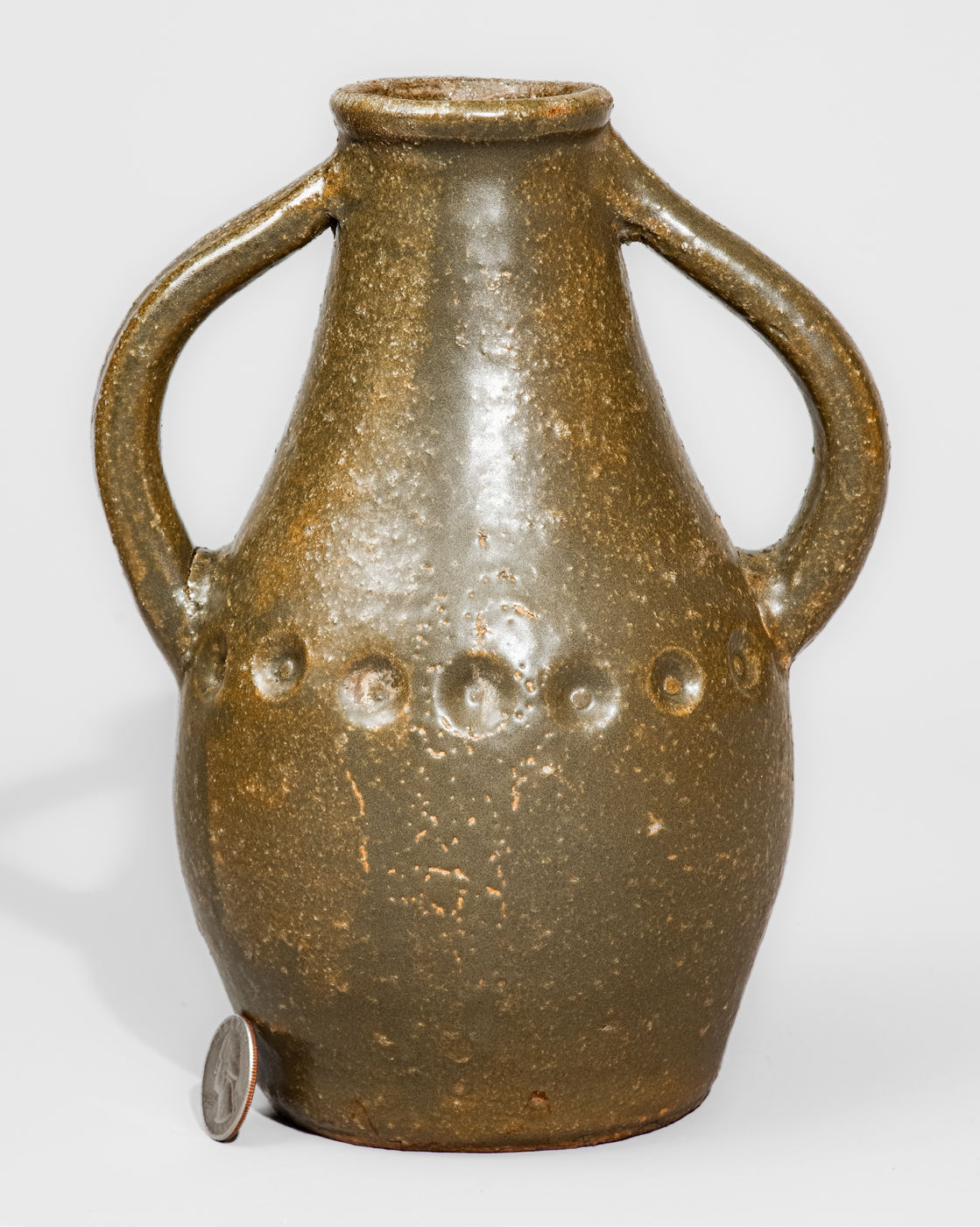 ×Rare AM (Arie Meaders, c1956-59) Alkaline-Glazed Stoneware Vase w/ Impressed Decoration