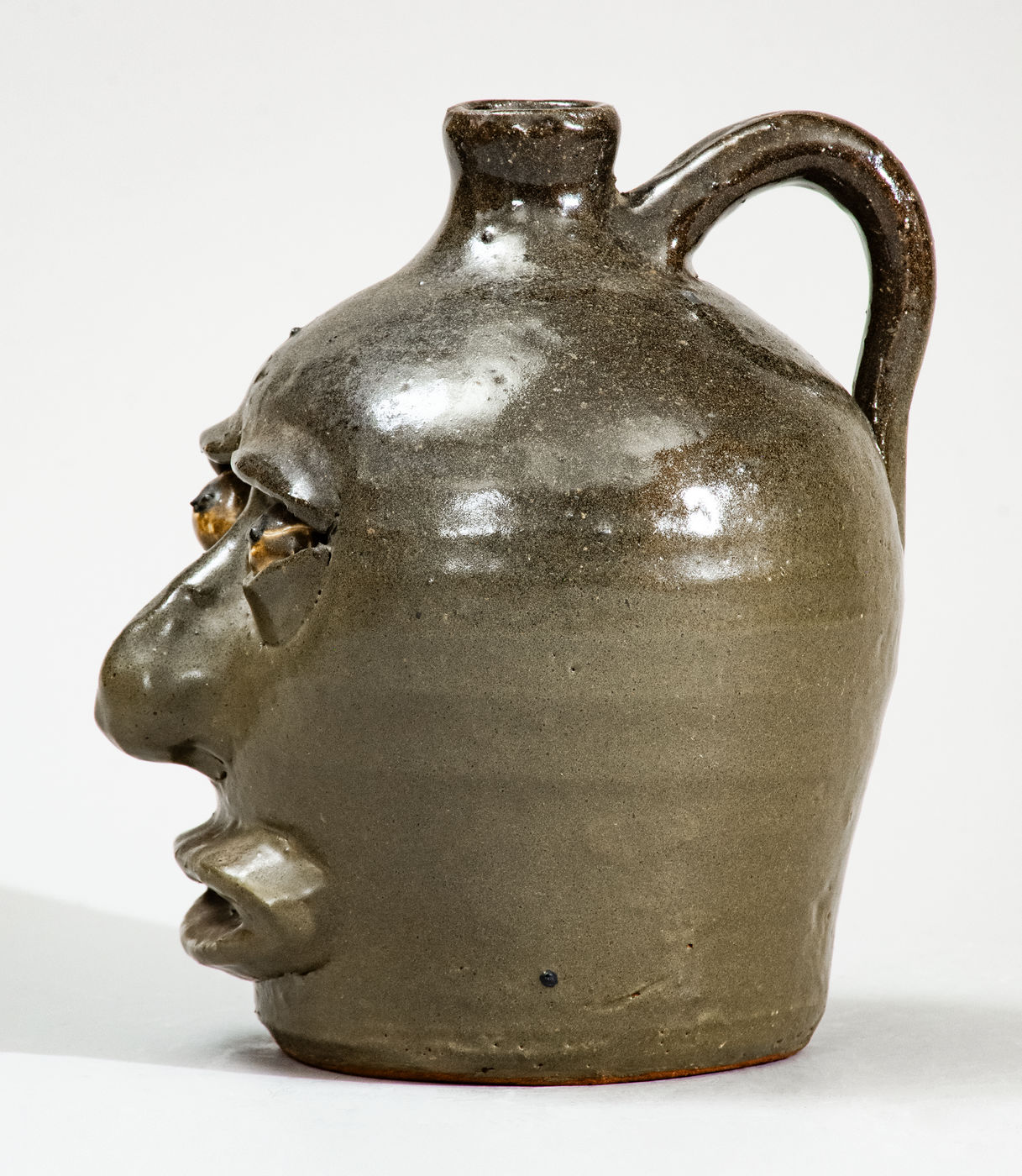 ×Very Rare LM (Lanier Meaders, circa 1960s) Alkaline-Glazed Stoneware Face Jug