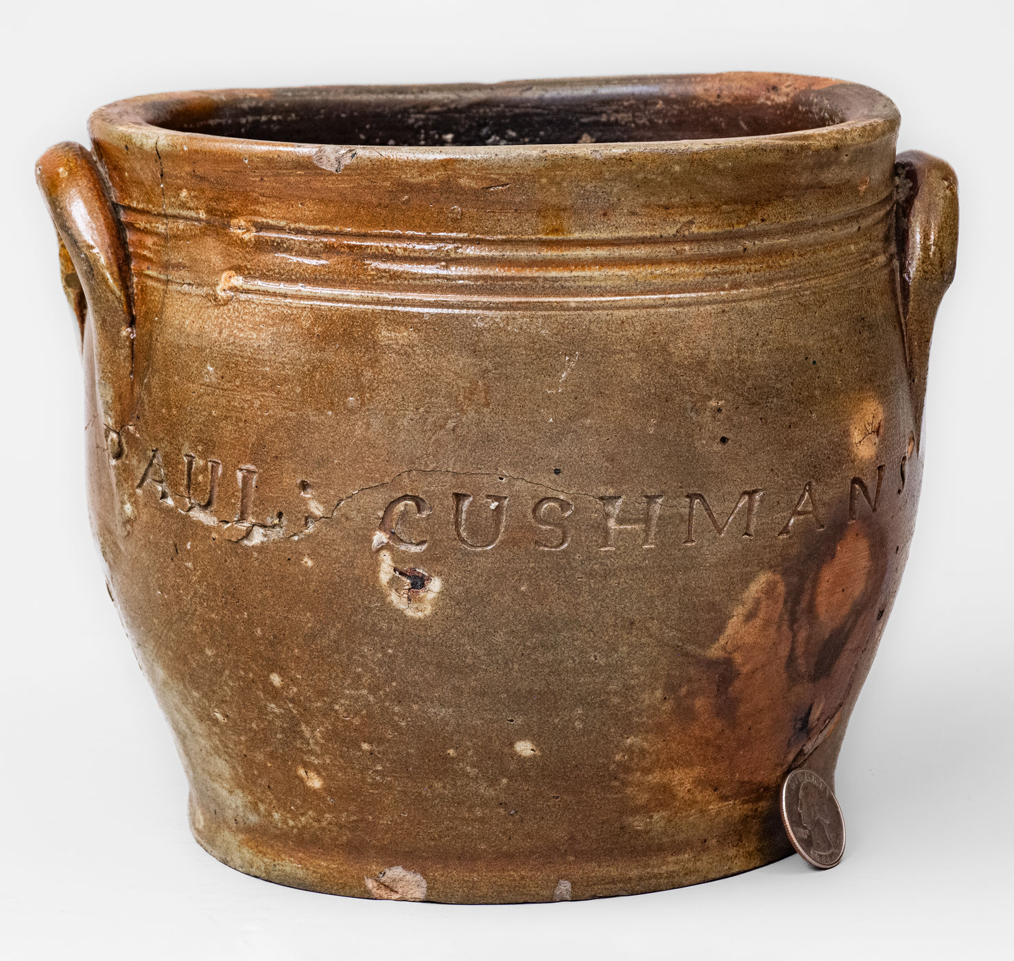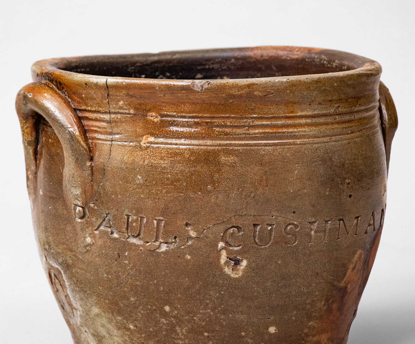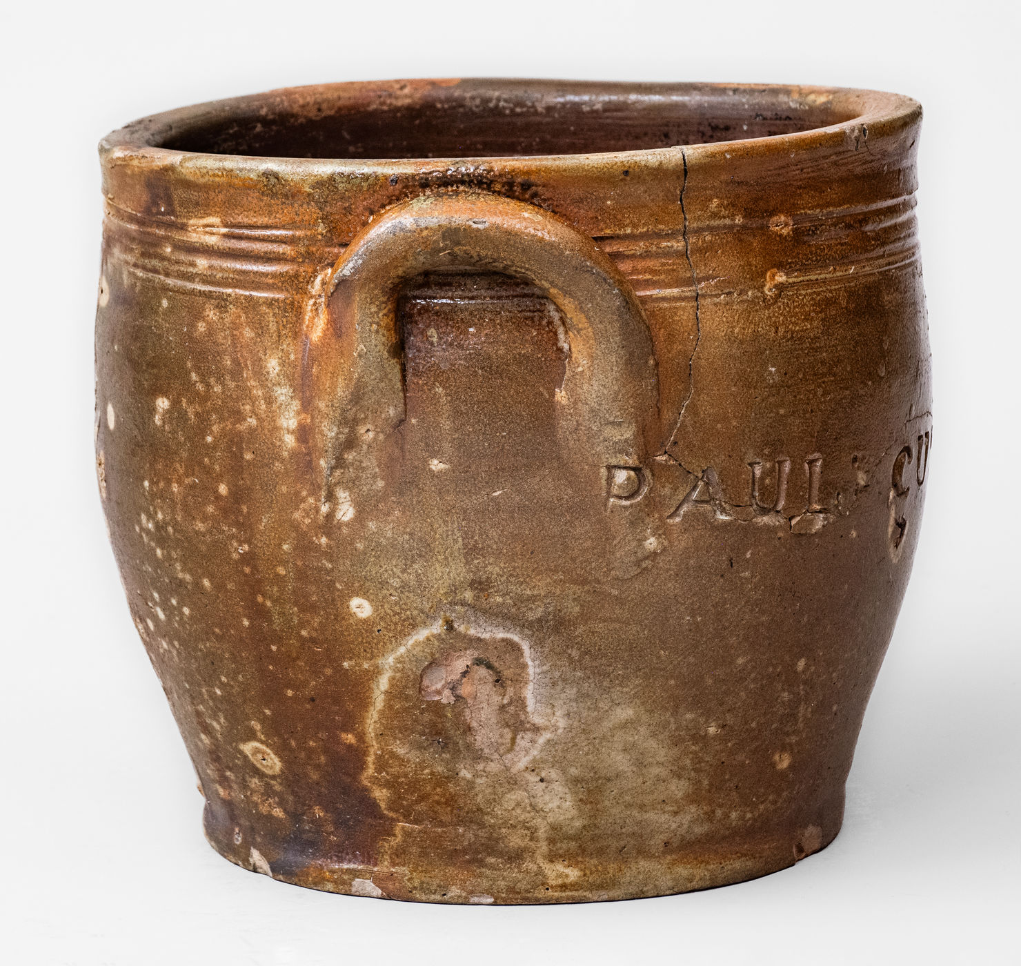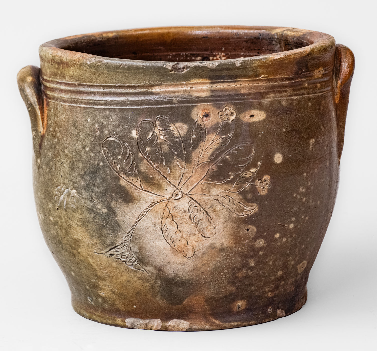 ×Rare PAUL CUSHMAN Stoneware Jar w/ Incised Floral Decoration, circa 1810