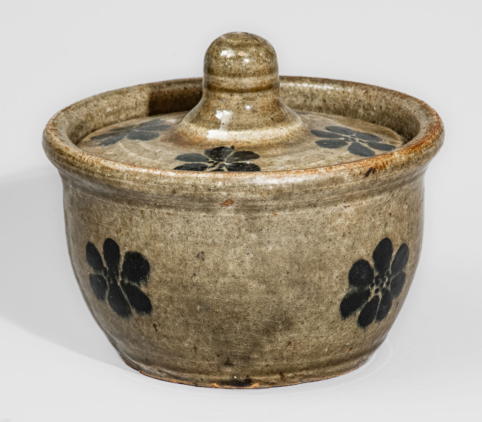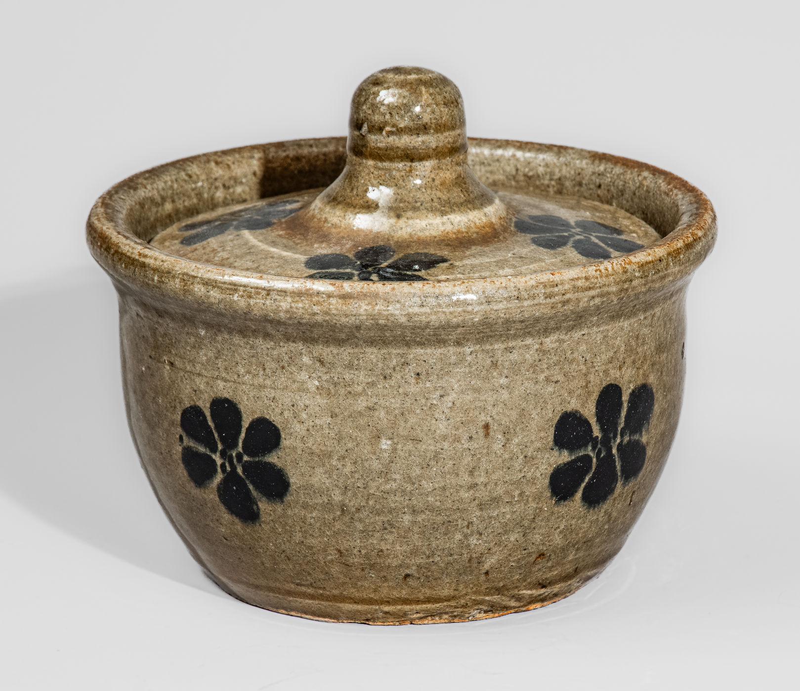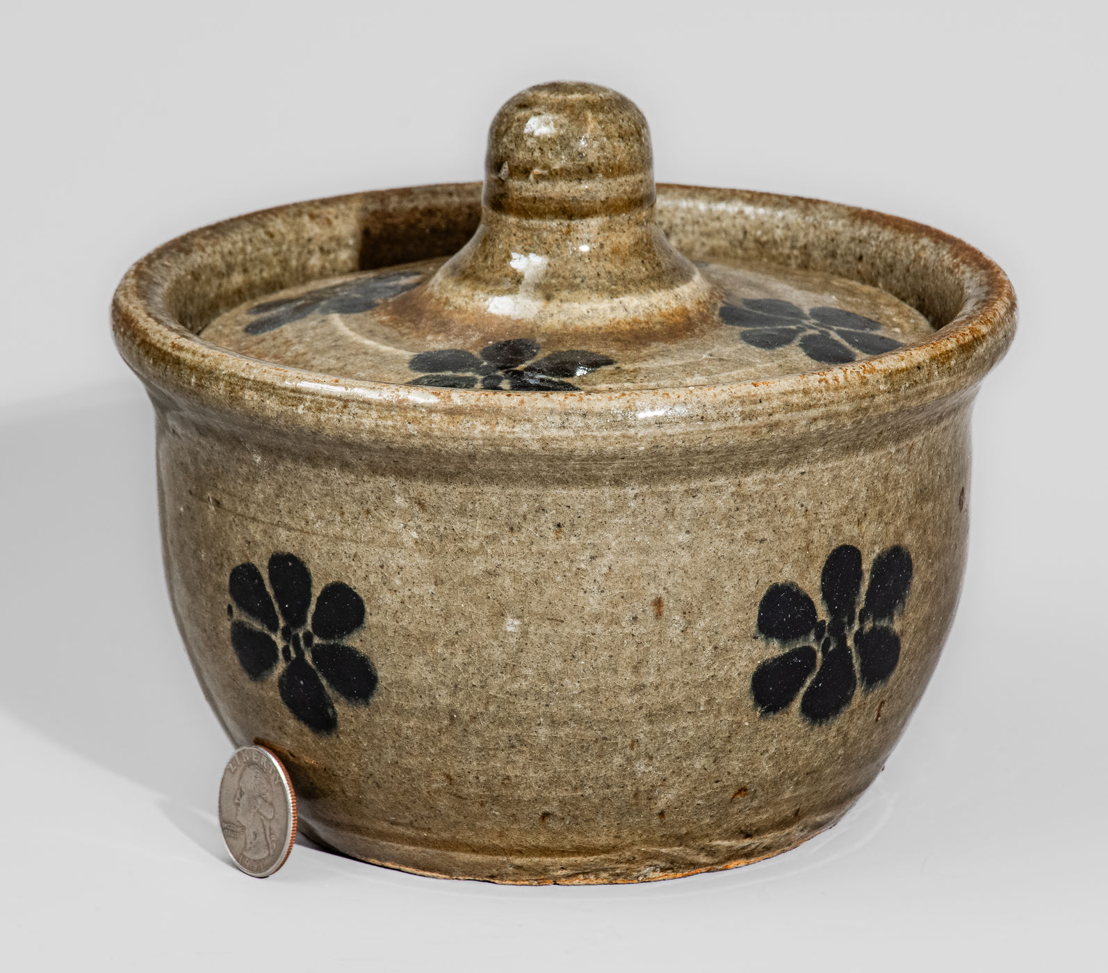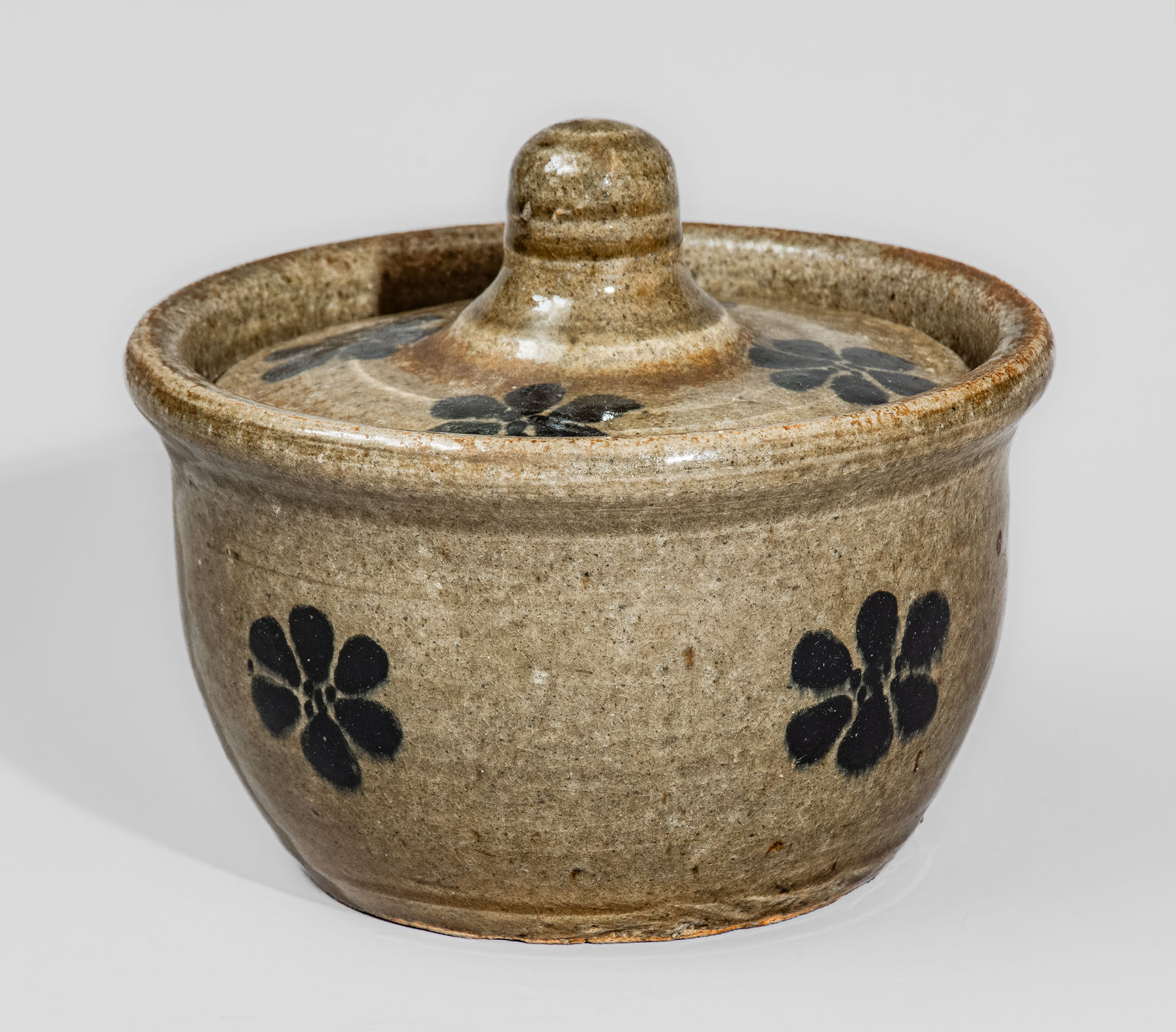 ×Unusual "L.M." (Lanier Meaders) Early-Period Alkaline-Glazed Lidded Stoneware Sugar Bowl