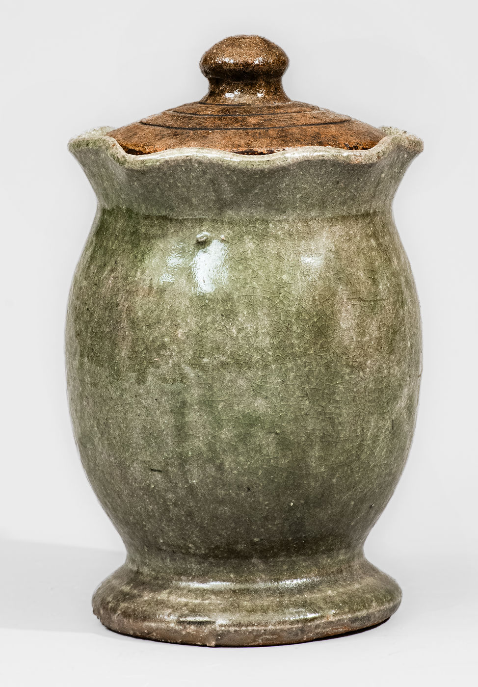 ×Early-Period "EM" (Edwin Meaders, Cleveland, GA) Stoneware Vase w/ Lid, c1960s-70s