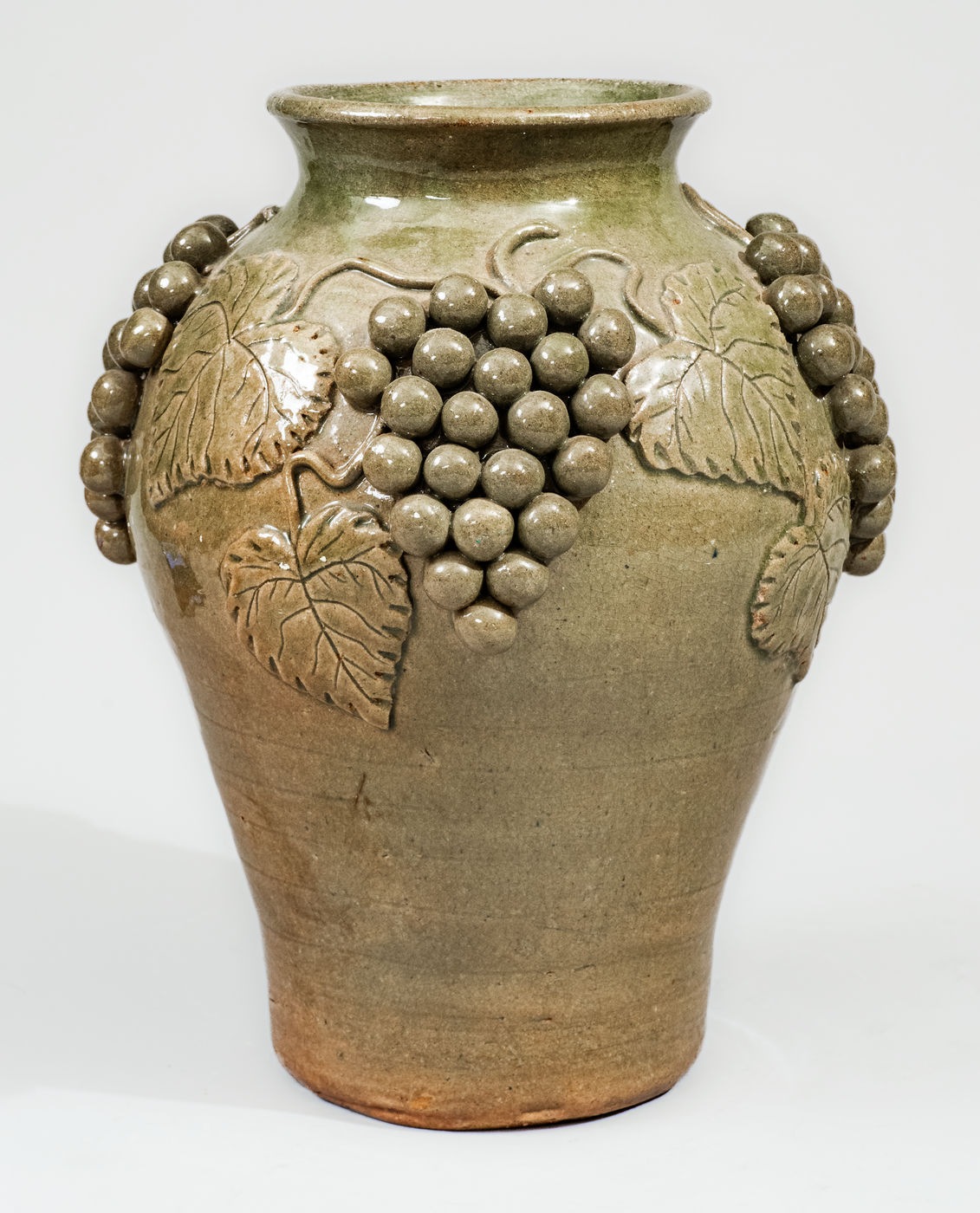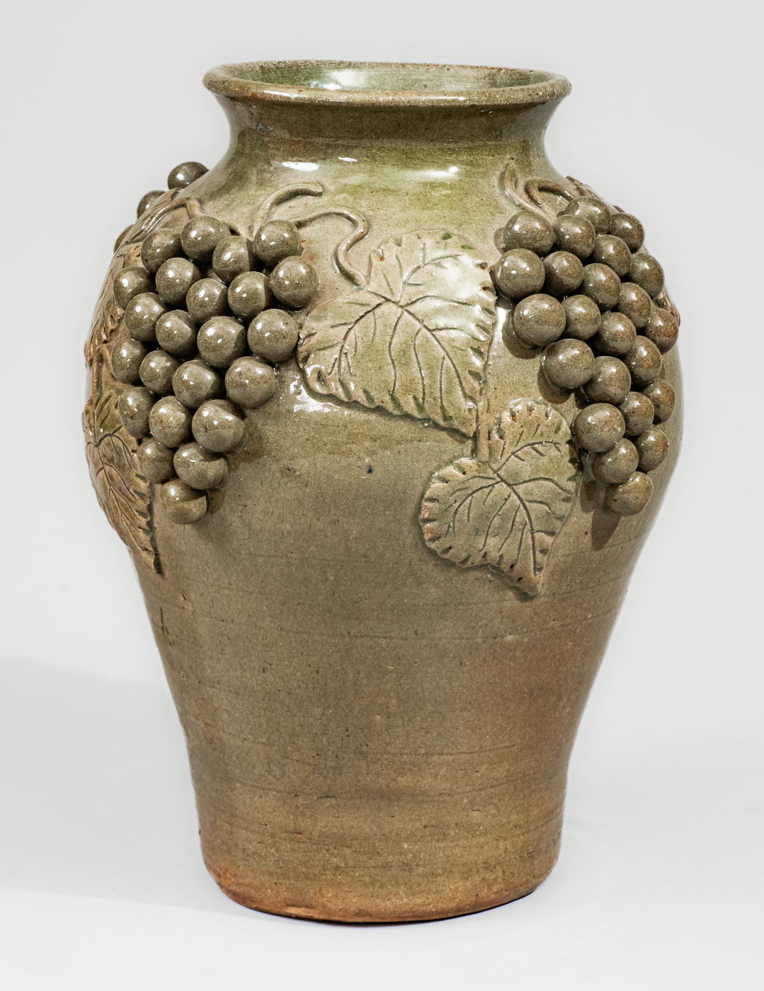 ×Exceptional Alkaline-Glazed Stoneware Grapes Vase attrib. Lanier Meaders, c1975