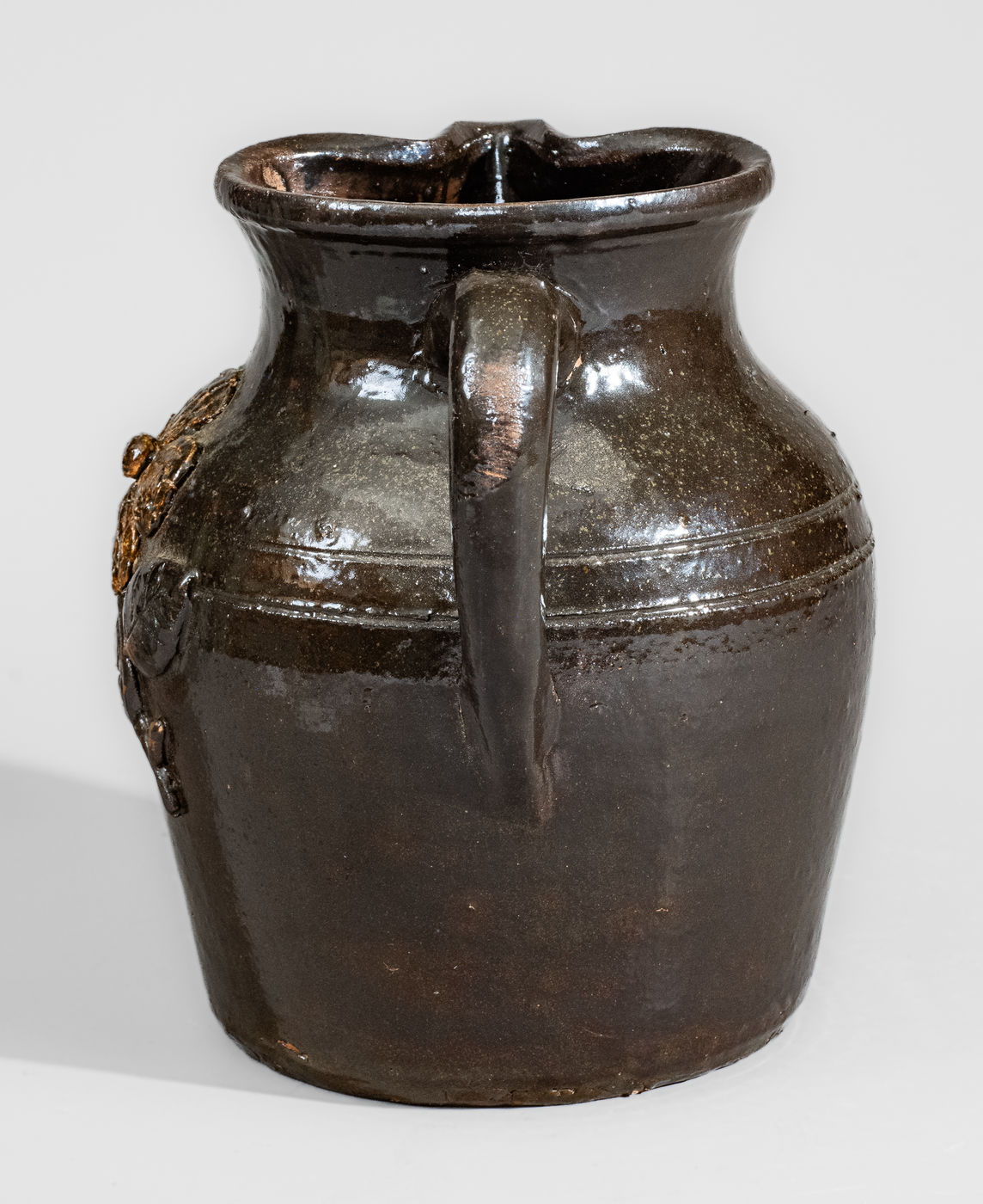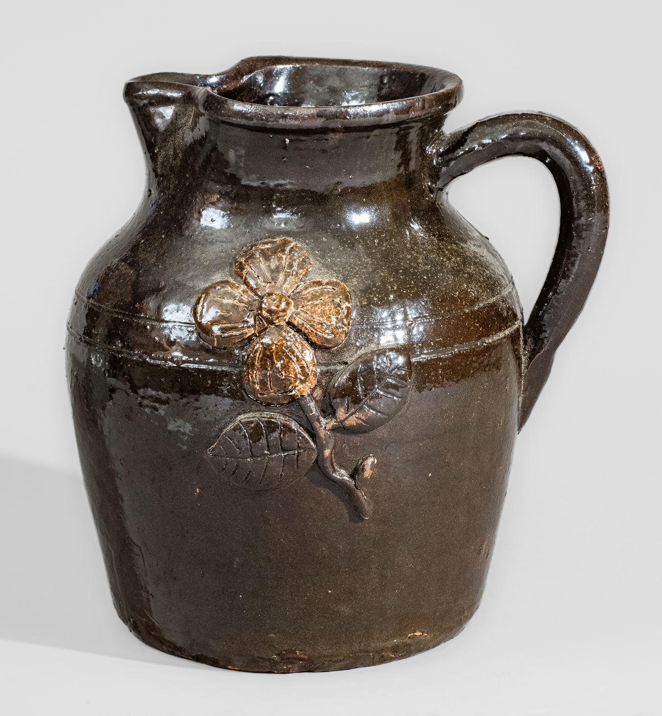 ×Early-Period Lanier Meader "Lm / 10-68" Stoneware Pitcher w/ Applied Floral Decoration