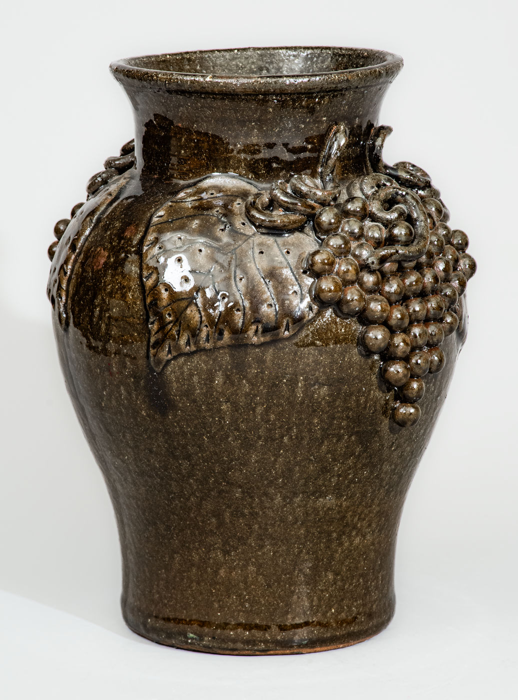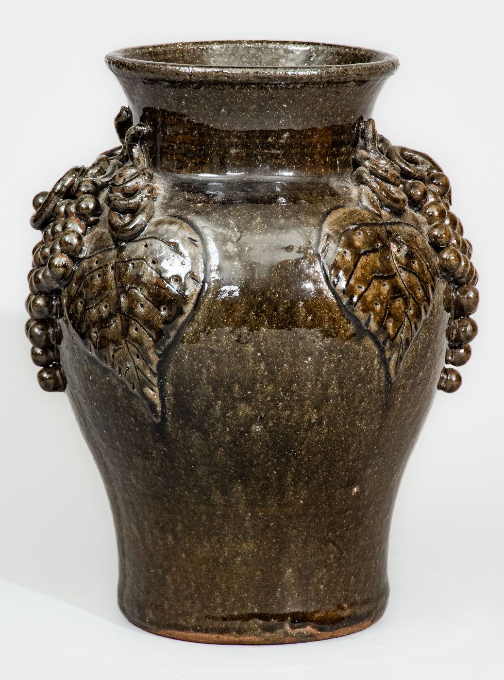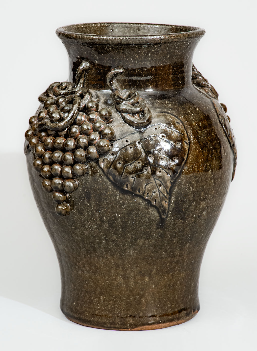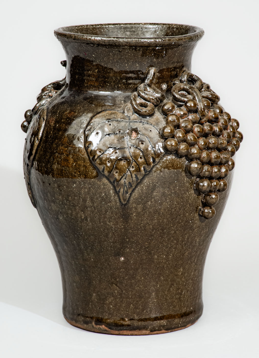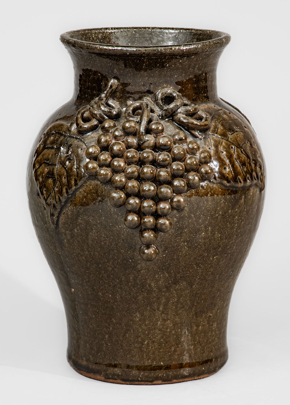 ×Alkaline-Glazed Stoneware Grapes Vase Signed "Lanier Meaders," c1975