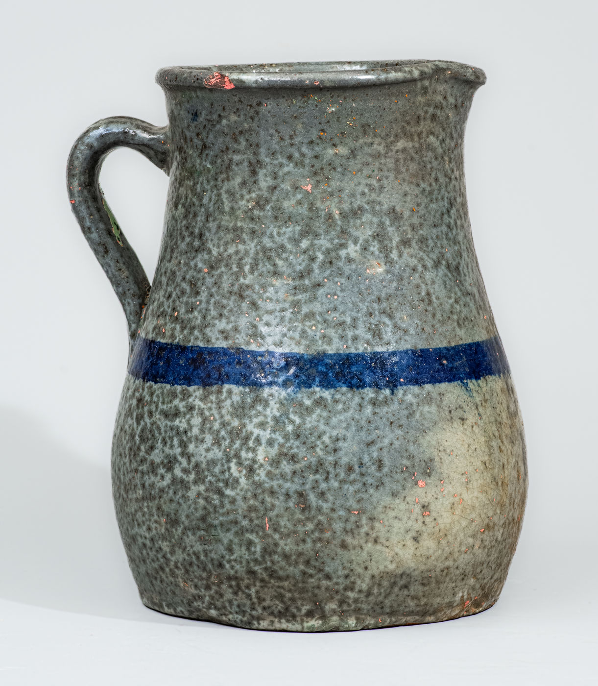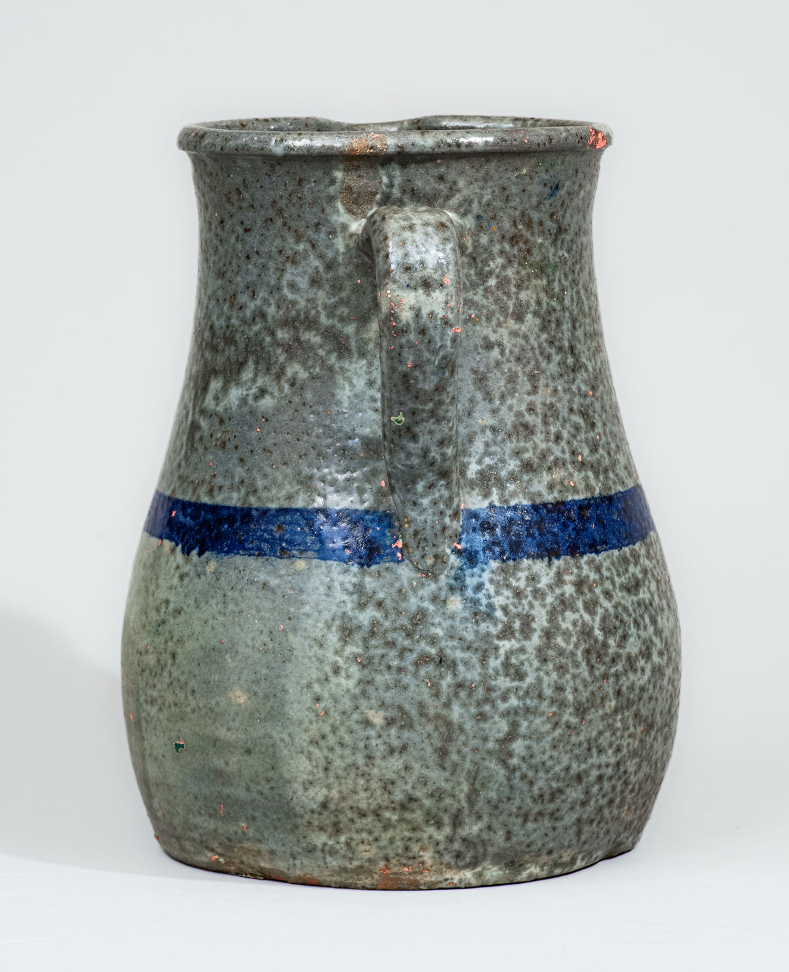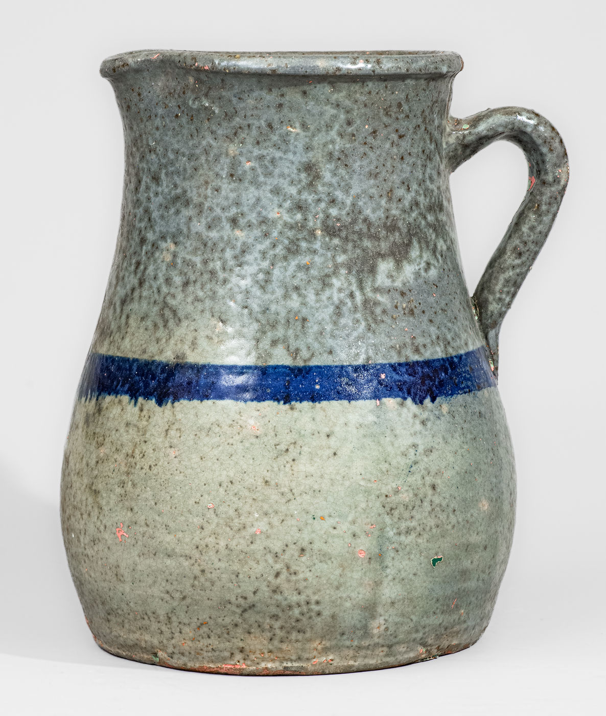 ×Alkaline-Glazed Stoneware Pitcher with Cobalt Stripe, attrib. Cheever Meaders