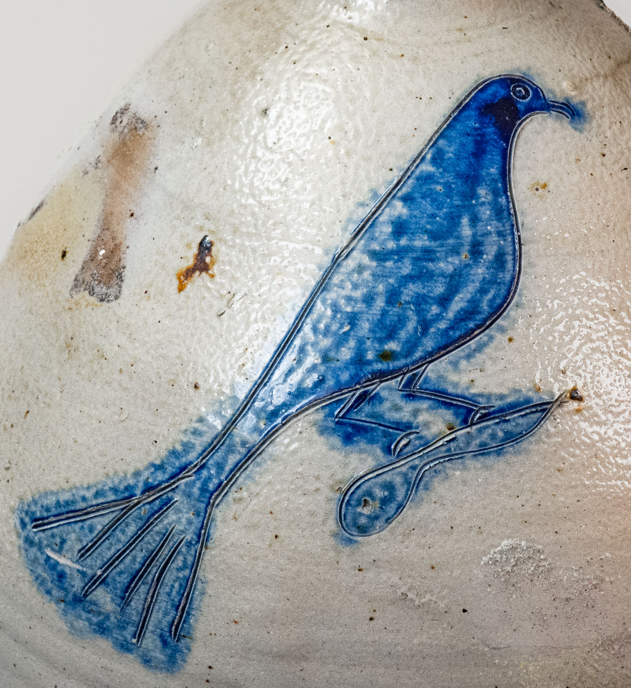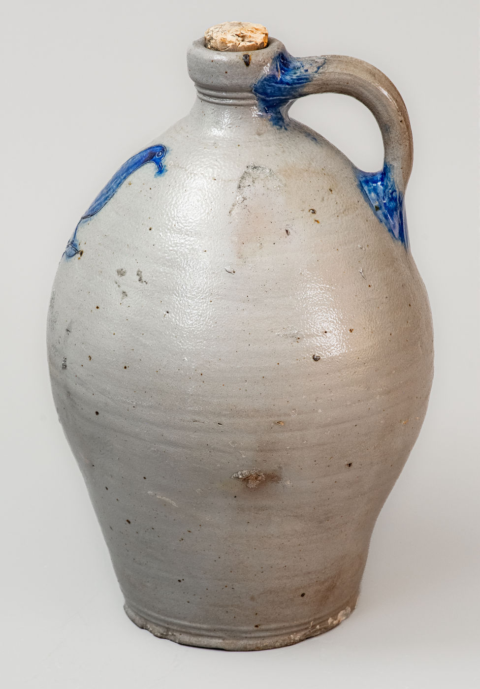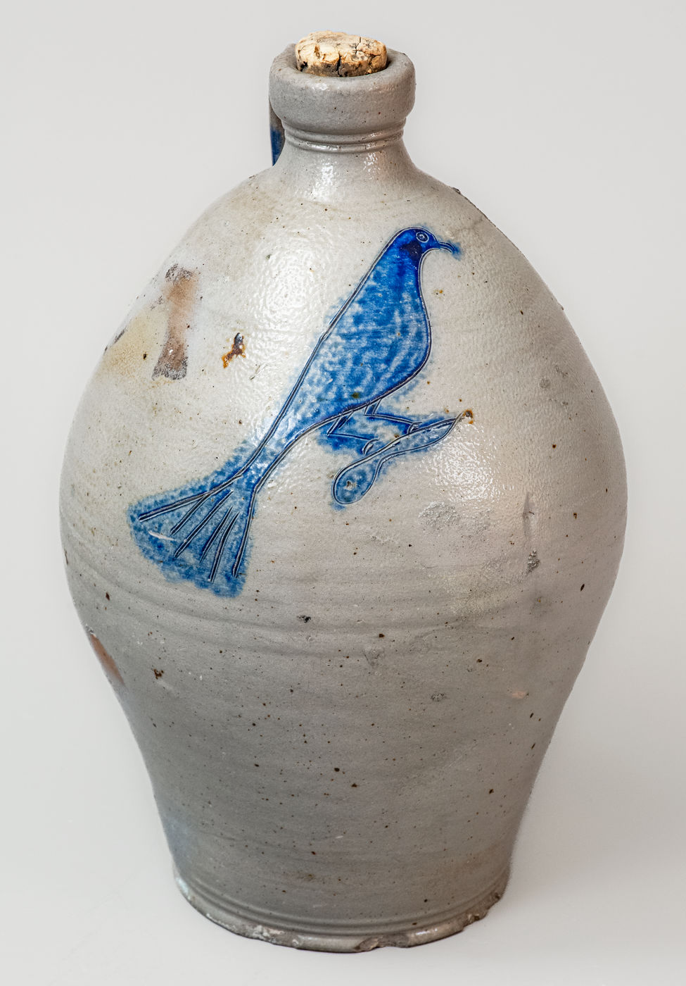×Scarce and Fine Albany, NY Stoneware Jug w/ Incised Bird Decoration, c1805
