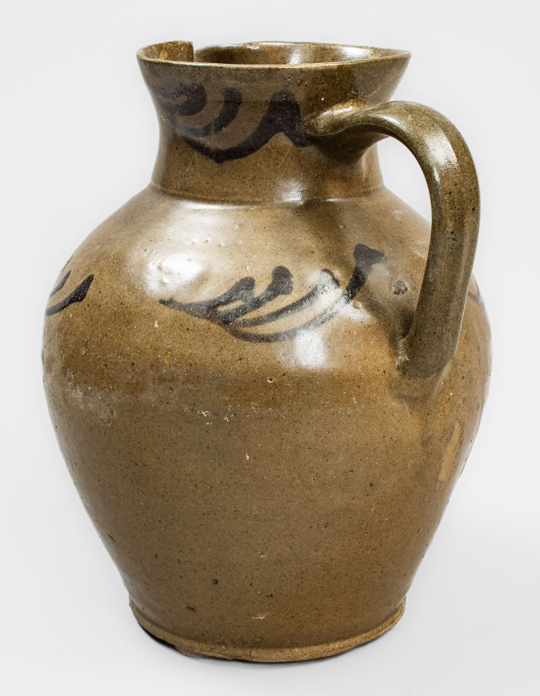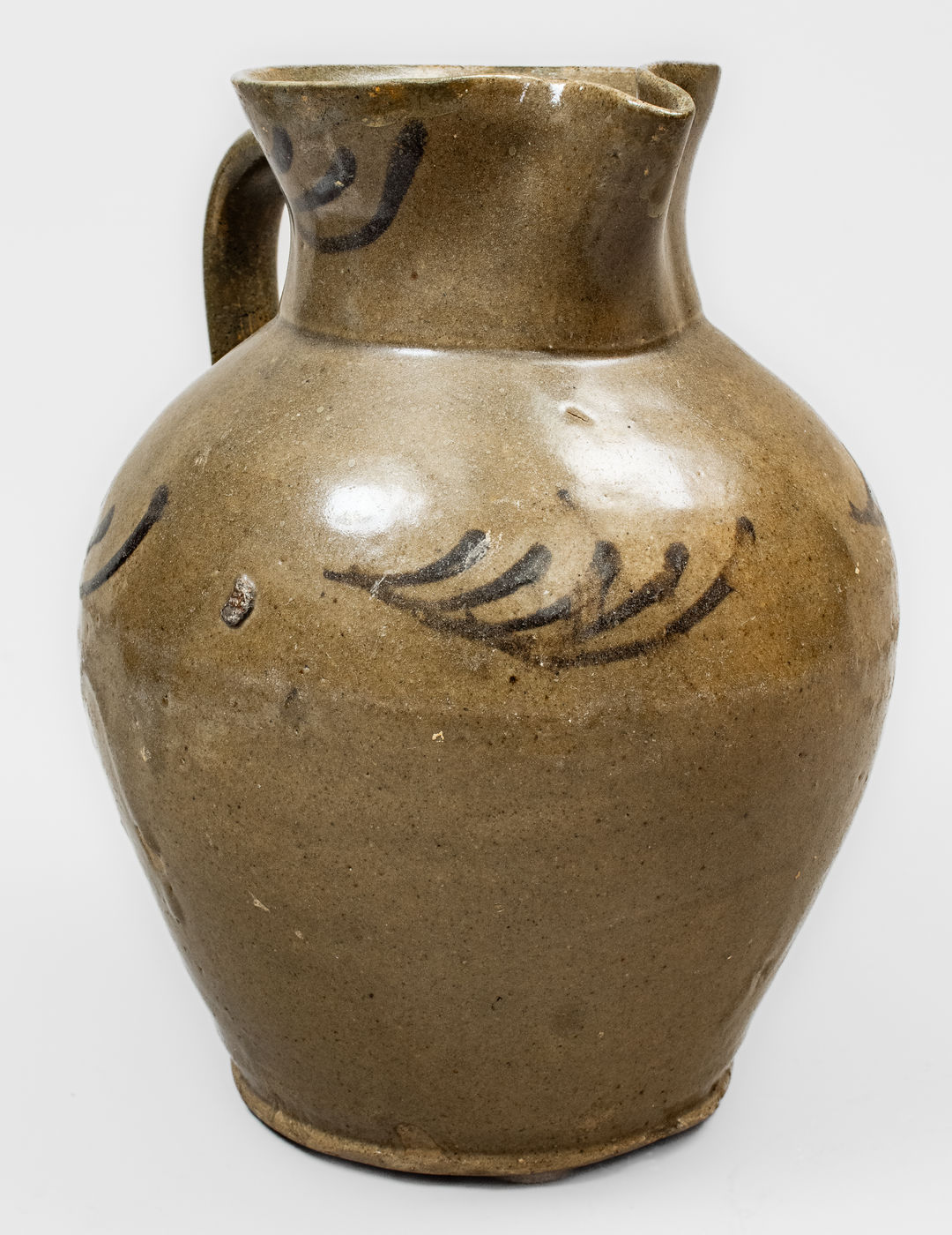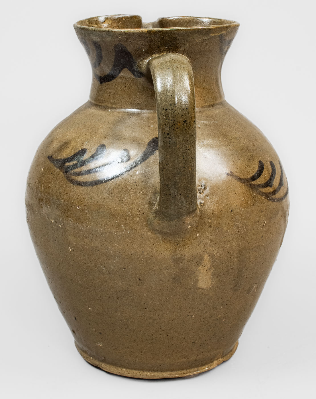 ×Attrib. Thomas Chandler, Edgefield District, SC Alkaline-Glazed Stoneware Pitcher w/ Iron Slip Decoration