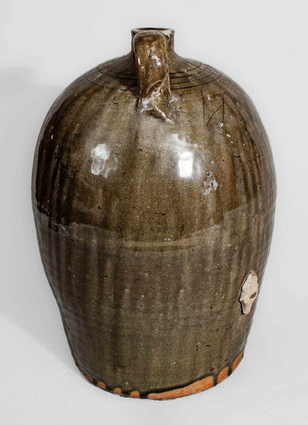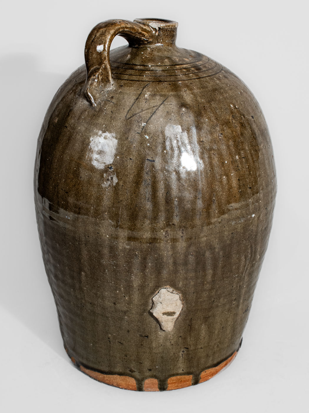 ×Four-Gallon Southern Alkaline-Glazed Stoneware Jug, second half 19th century