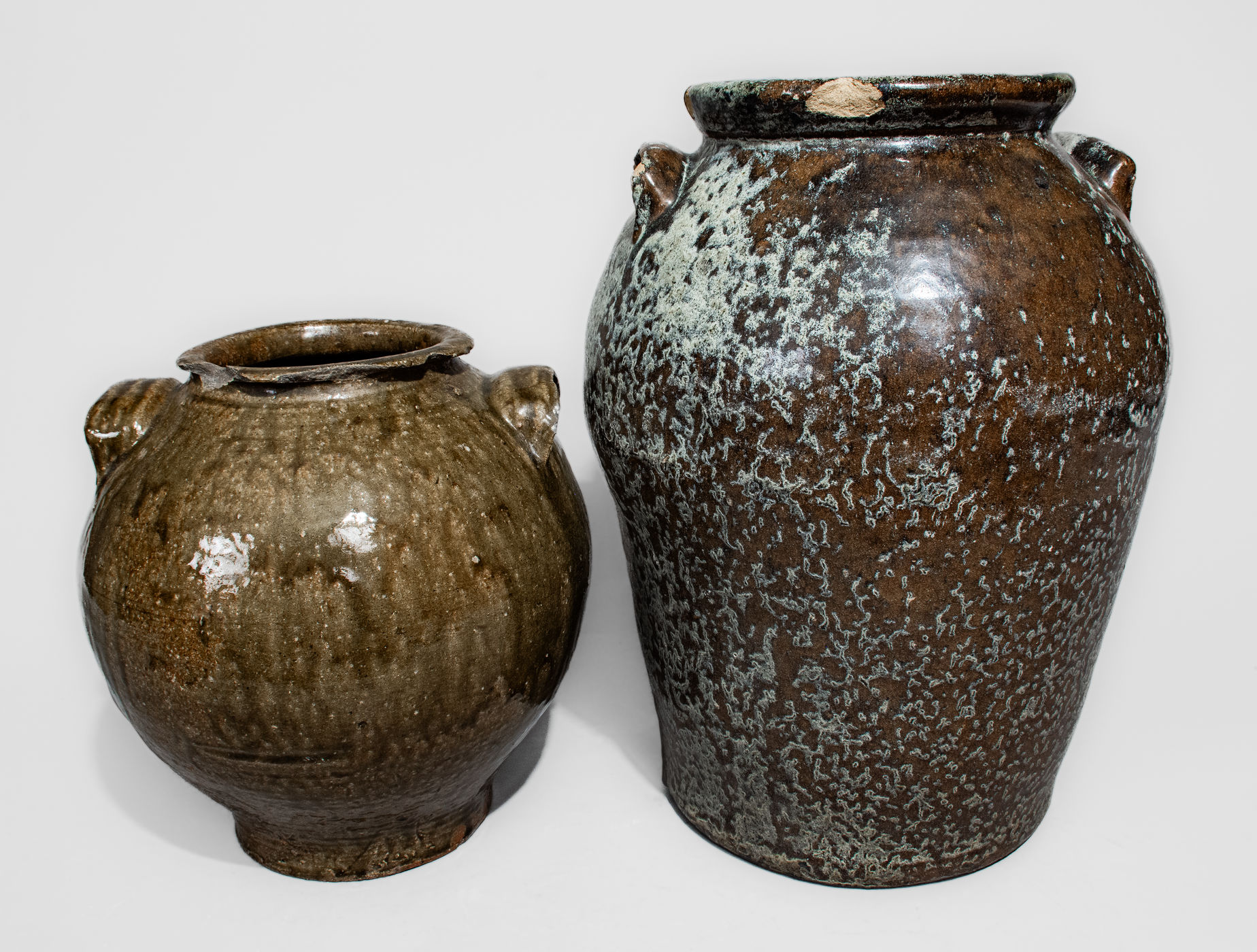 ×Two Alkaline-Glazed Southern Stoneware Jars, 19th - 20th centuries