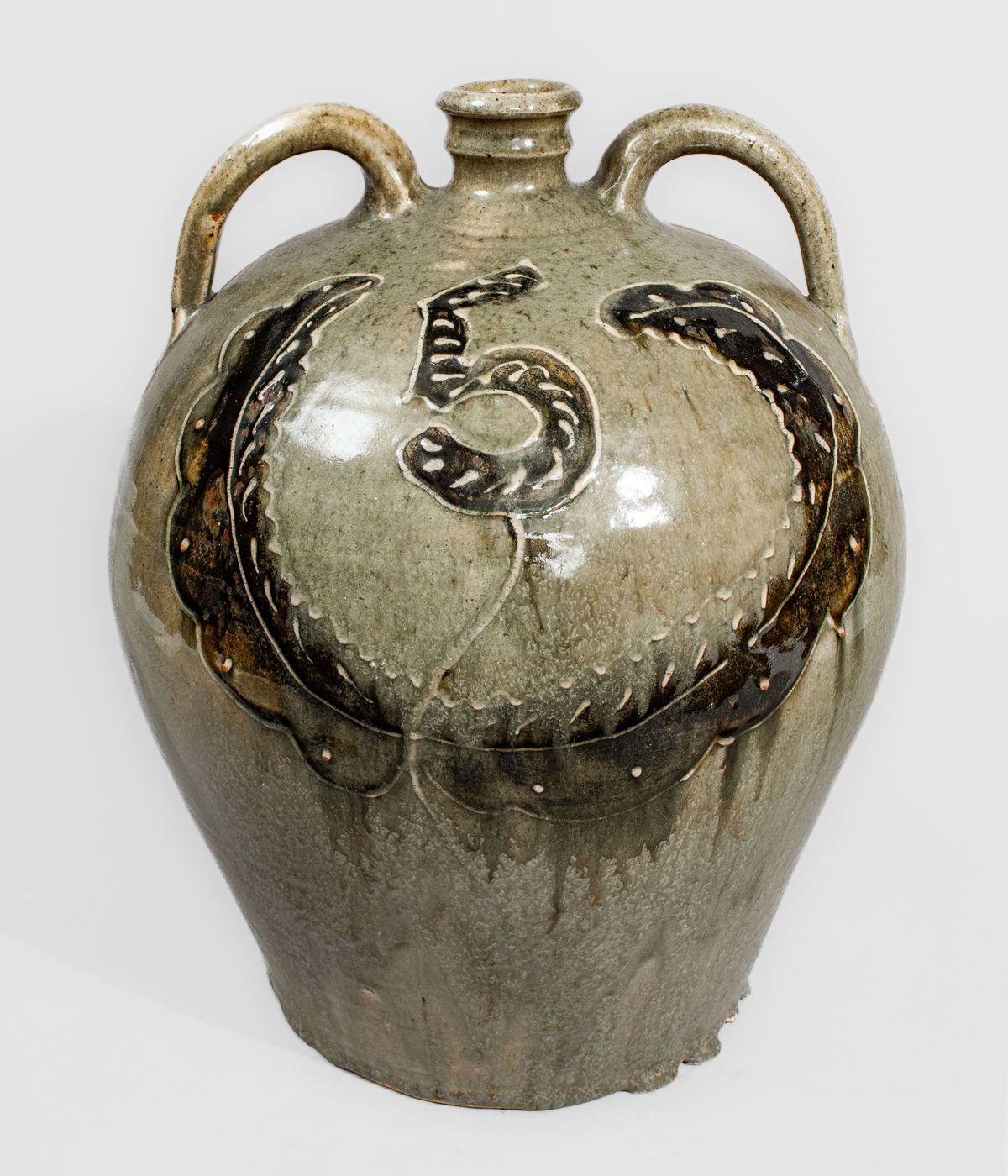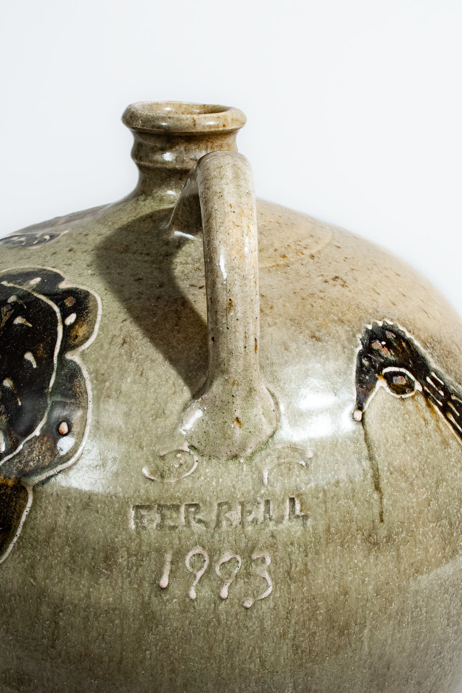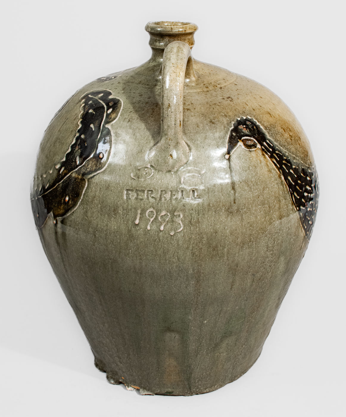 ×Stephen Ferrell (FERRELL / 1993) Double-Handled Jug w/ Two-Color-Slip Chicken Decoration