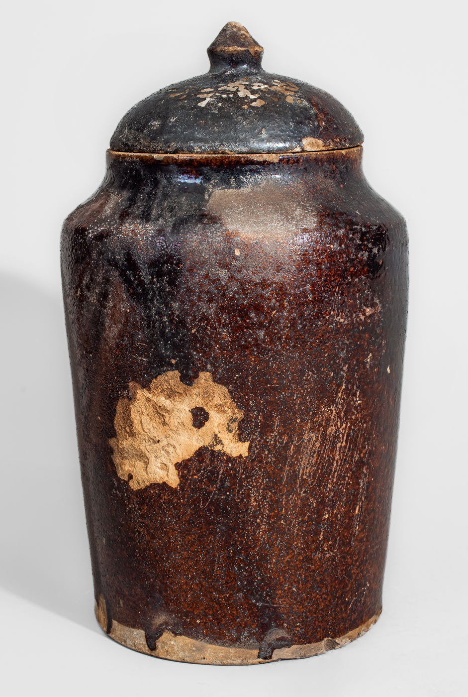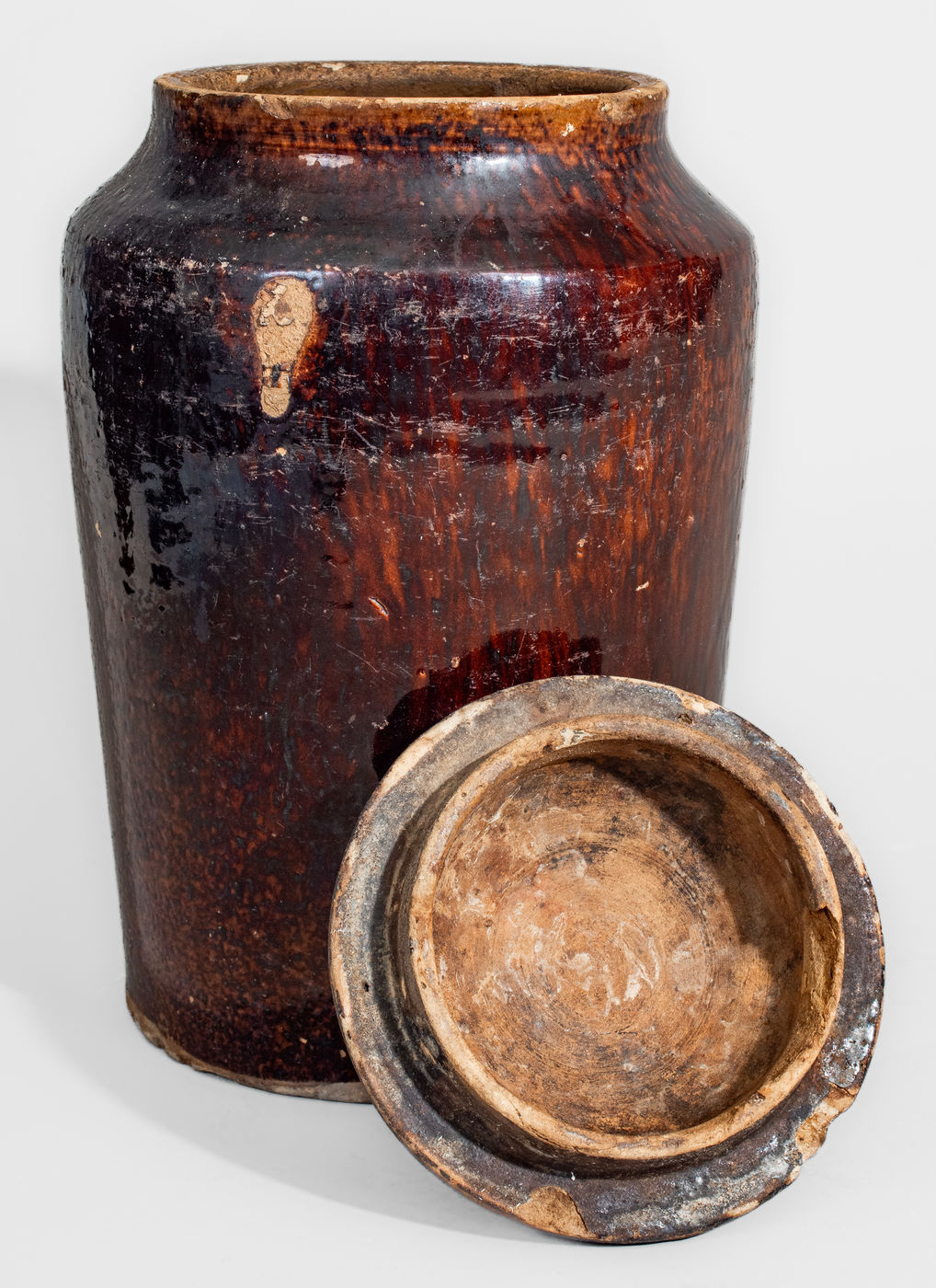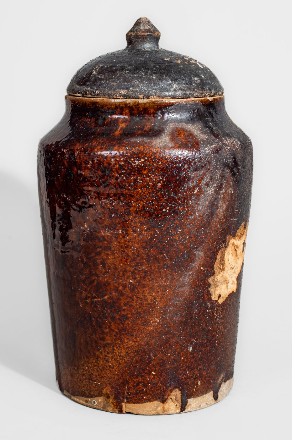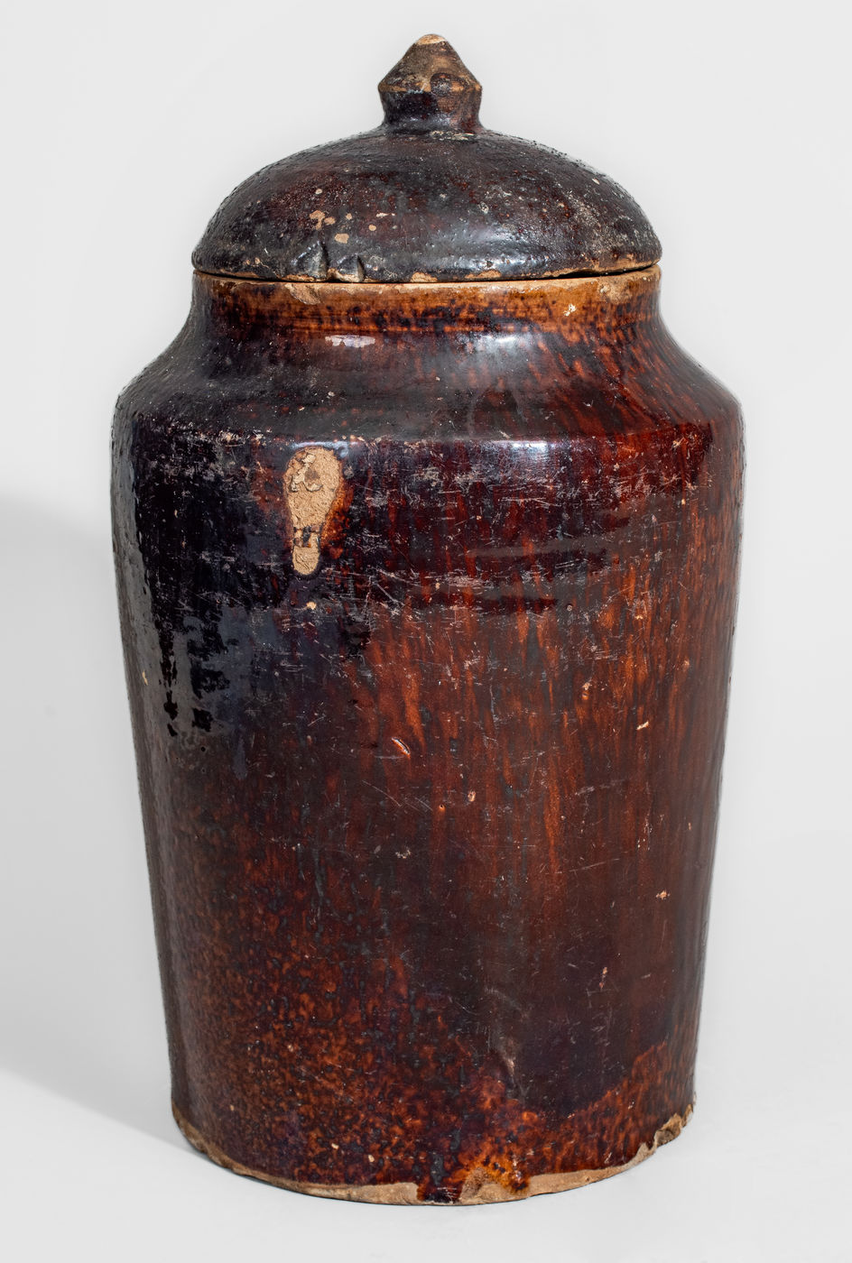 ×Glazed Redware Jar w/ Lid, possibly Southern origin, 19th century