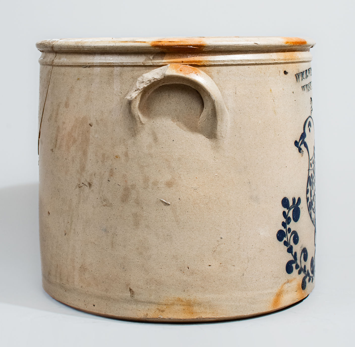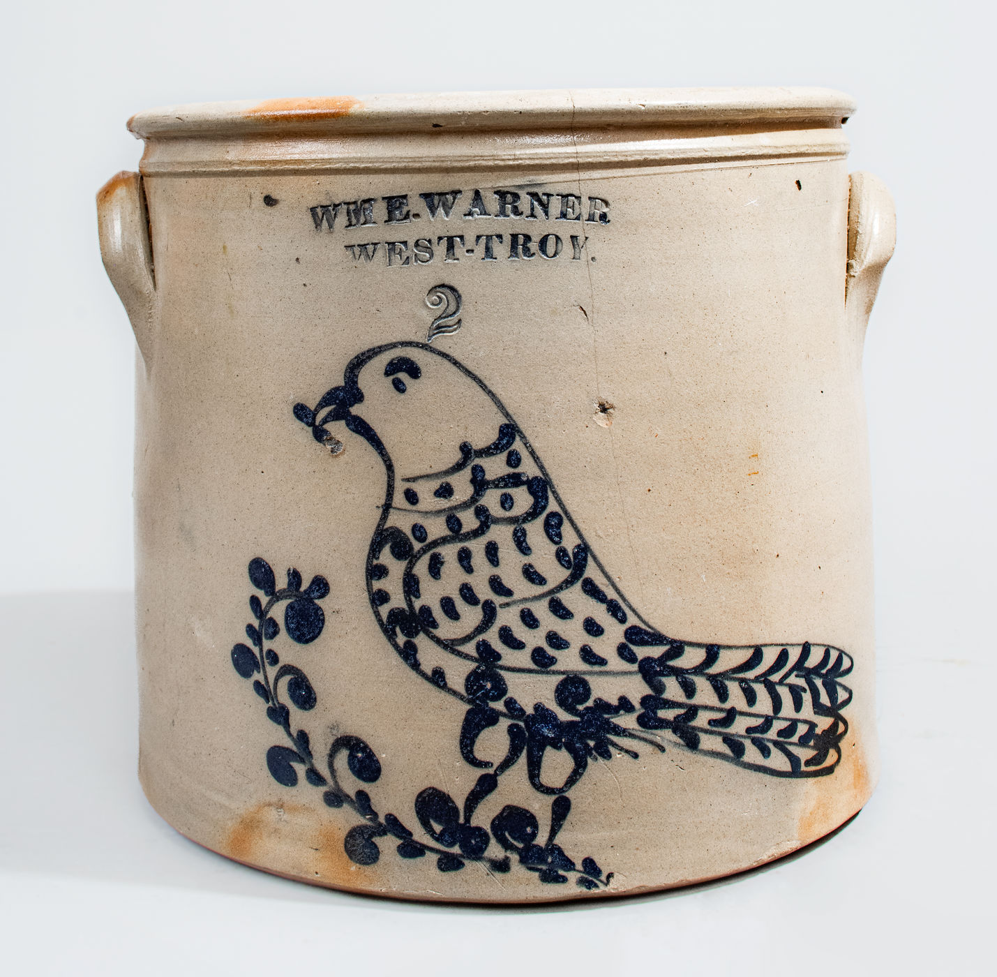 ×Rare WM E. WARNER / WEST-TROY, New York Two-Gallon Stoneware Bird Crock