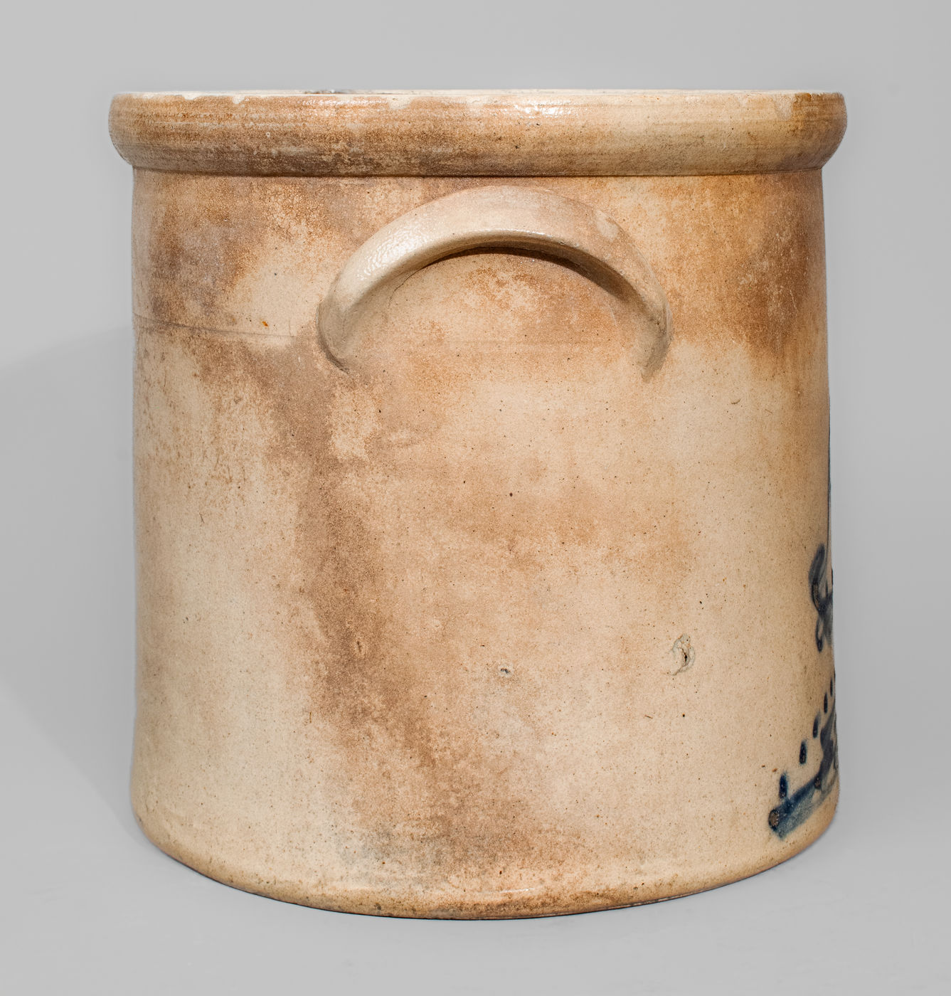 ×"12 LBS" Stoneware Crock w/ Chicken Pecking Corn Decoration, attrib. Riedinger & Caire, Poughkeepsie, NY