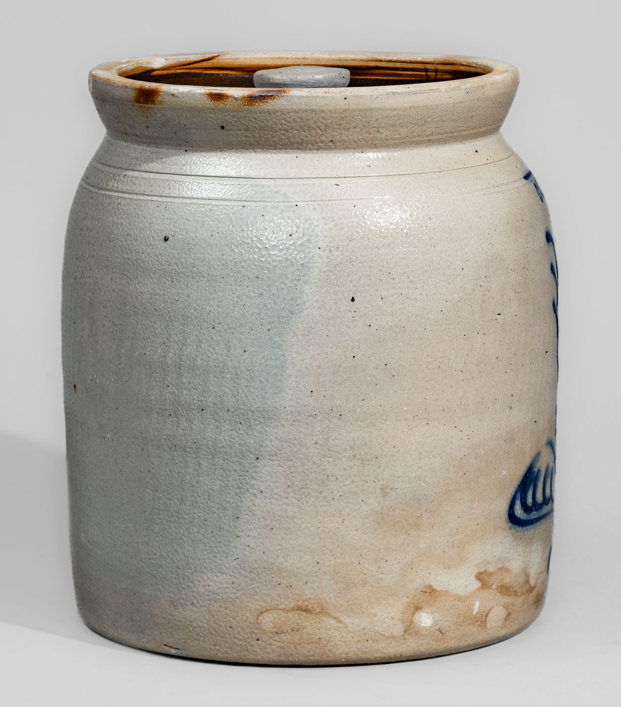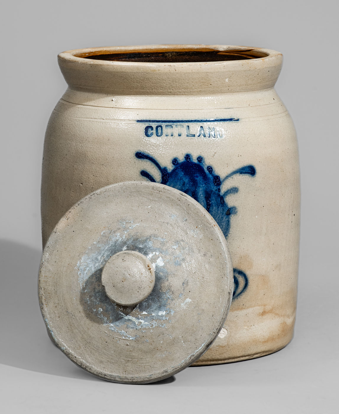 ×CORTLAND, New York Stoneware Jar w/ Cobalt Floral Decoration, c1867-69