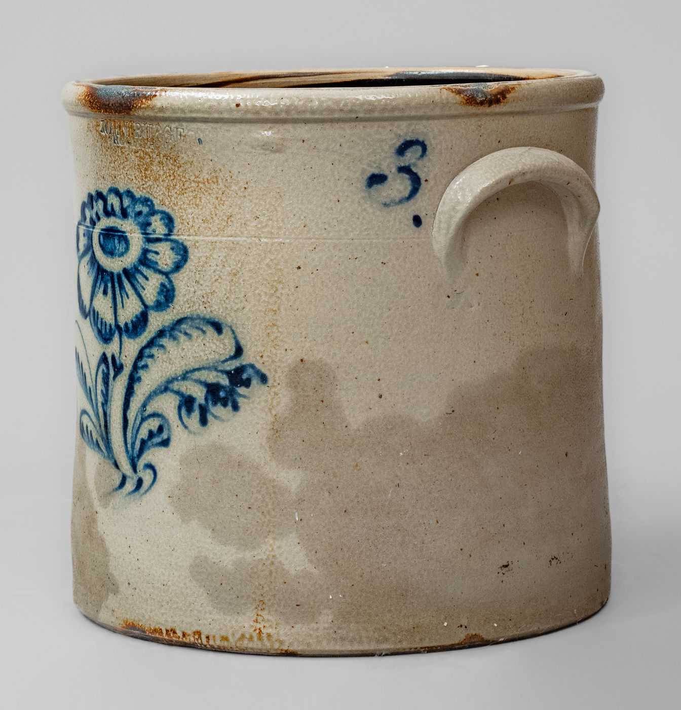 ×JOHN BURGER / ROCHESTER, NY Three-Gallon Stoneware Crock, c1860