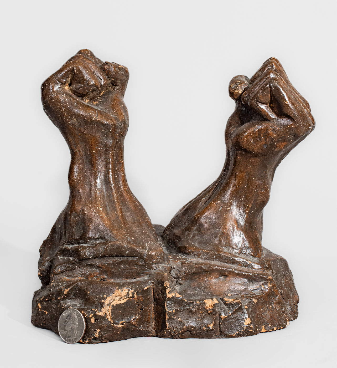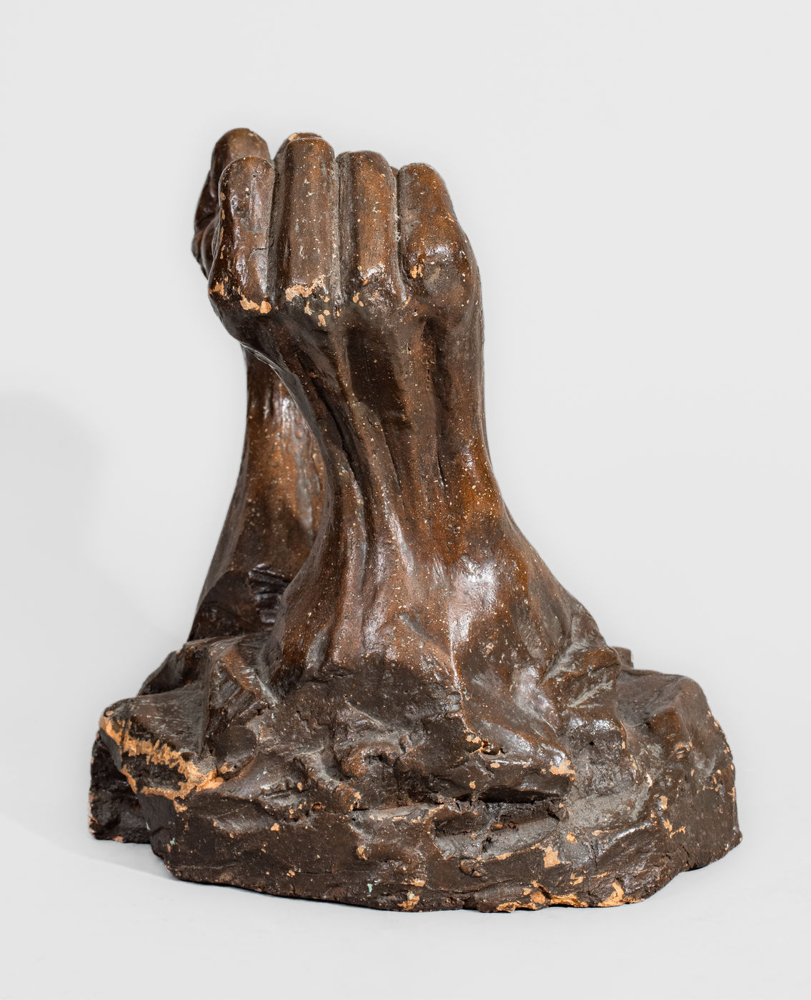 ×Brown-Glazed Midwestern Stoneware Sculpture of Hands, probably Ohio, late 19th century