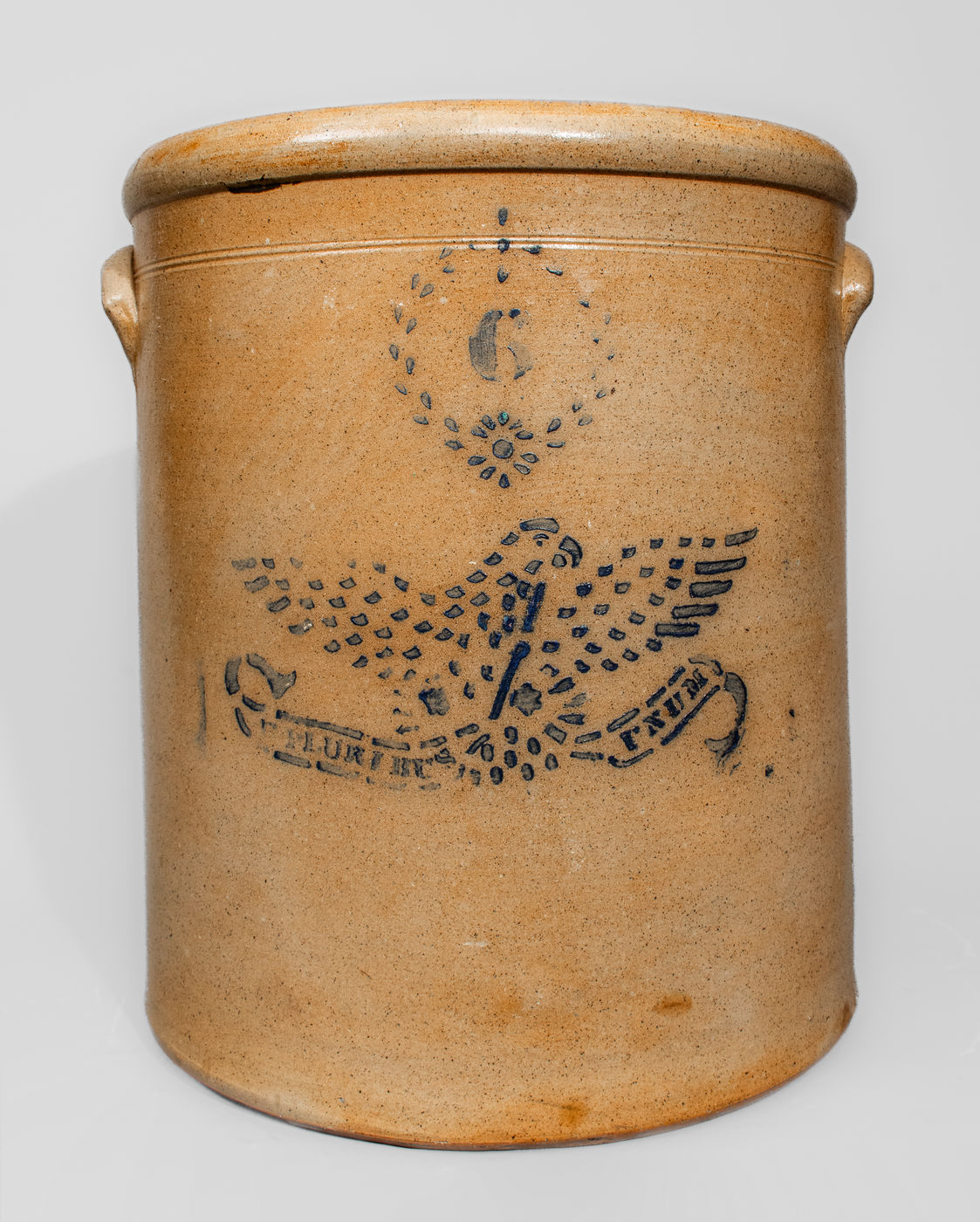 ×Six-Gallon Ohio Stoneware Eagle Crock, E PLURIBUS UNUM