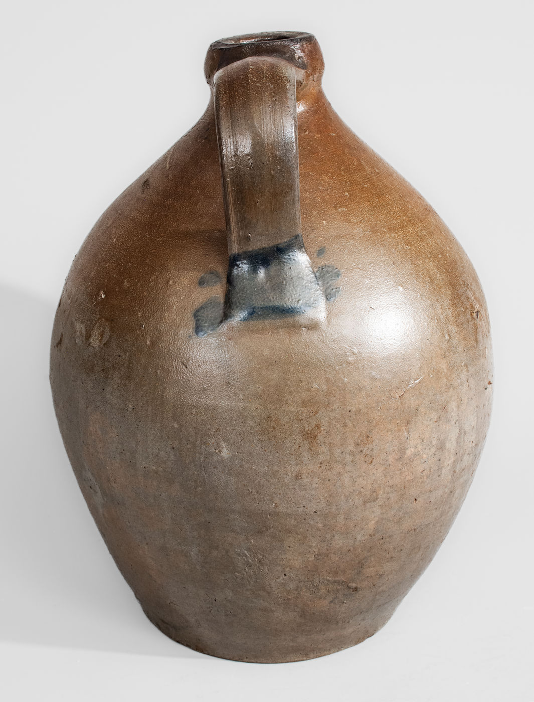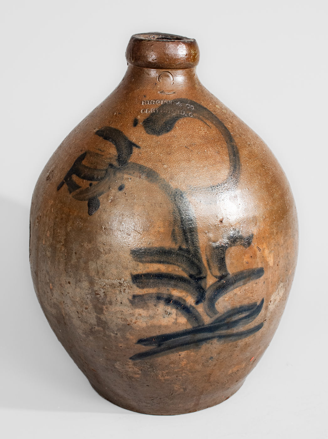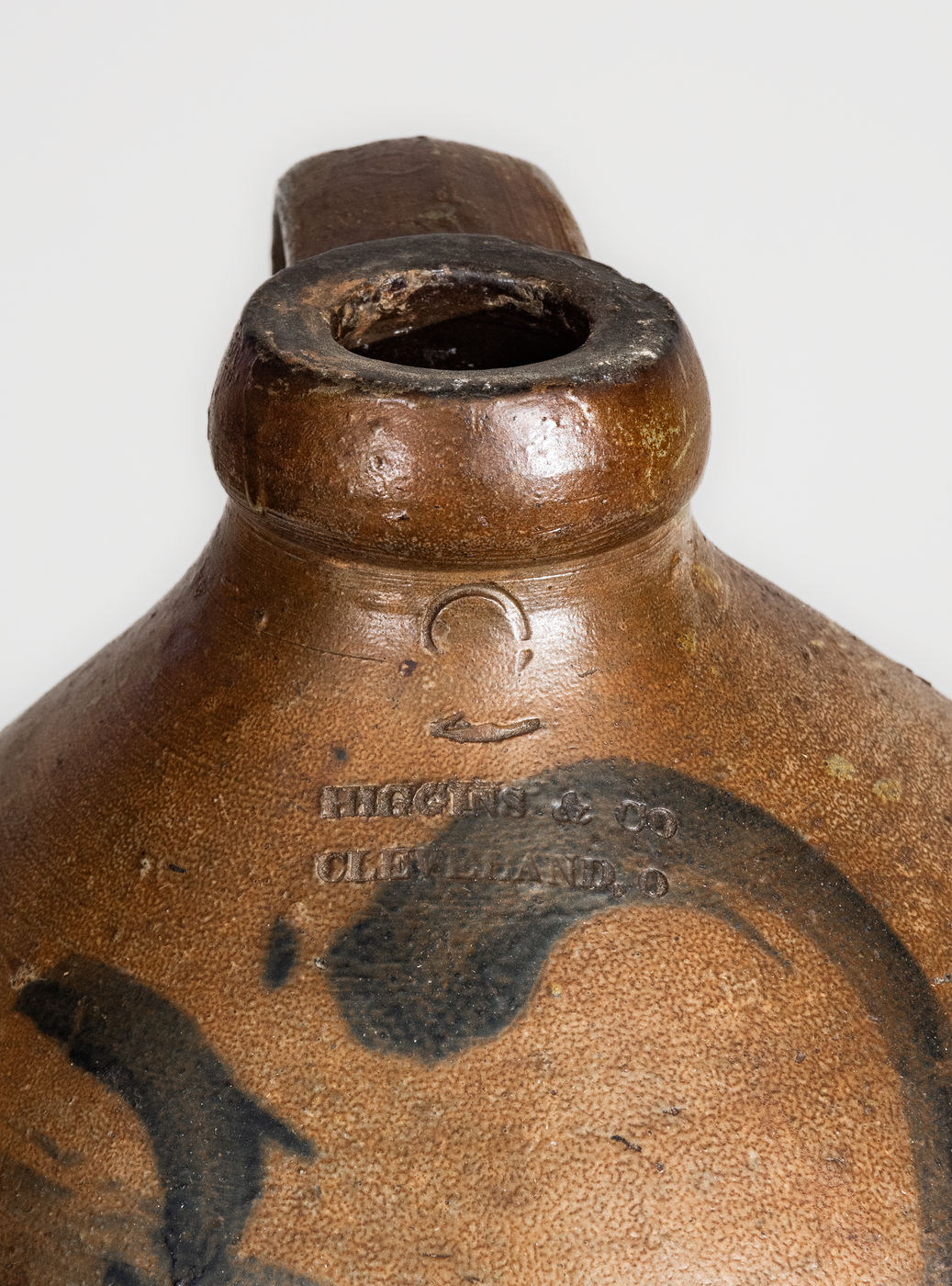 ×HIGGINS & CO. / CLEVELAND, Ohio Stoneware Jug w/ Elaborate Cobalt Floral Decoration