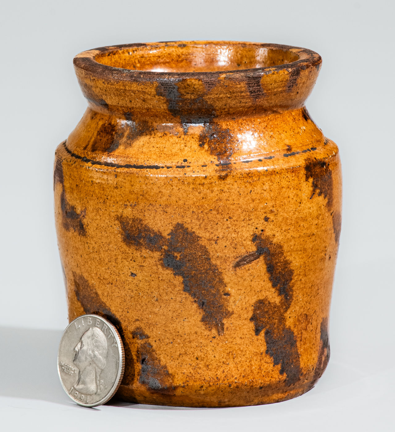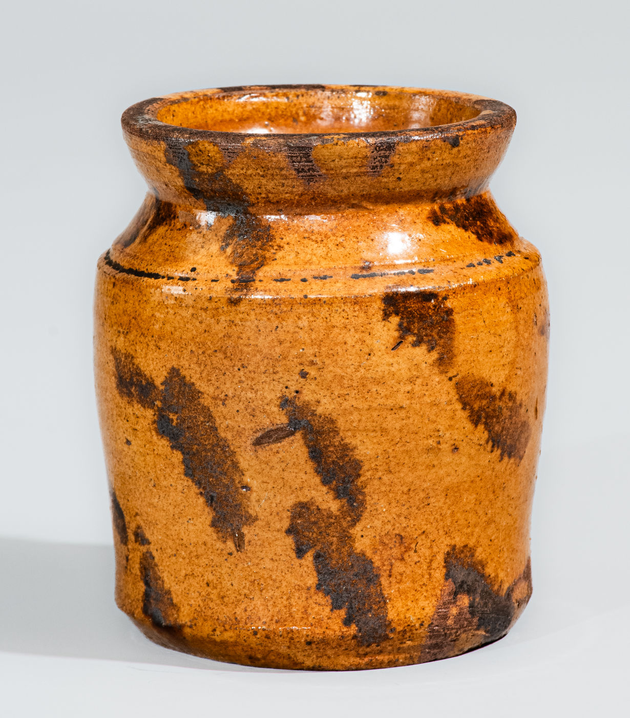 ×Rare and Fine Miniature Midwestern Redware Jar w/ Manganese Slashes, probably Galena