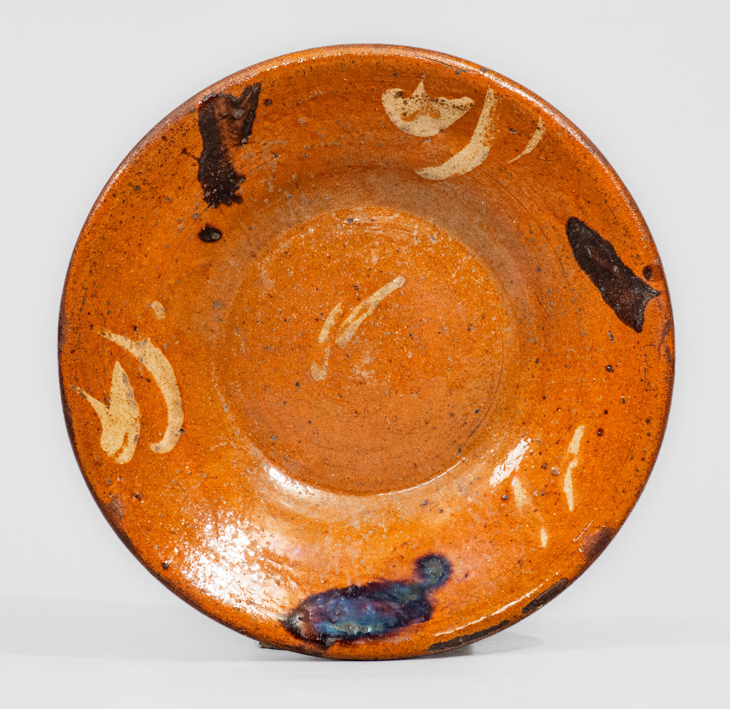 ×Alamance County, NC Redware Dish w/ Two-Color-Slip Decoration, circa 1820-50