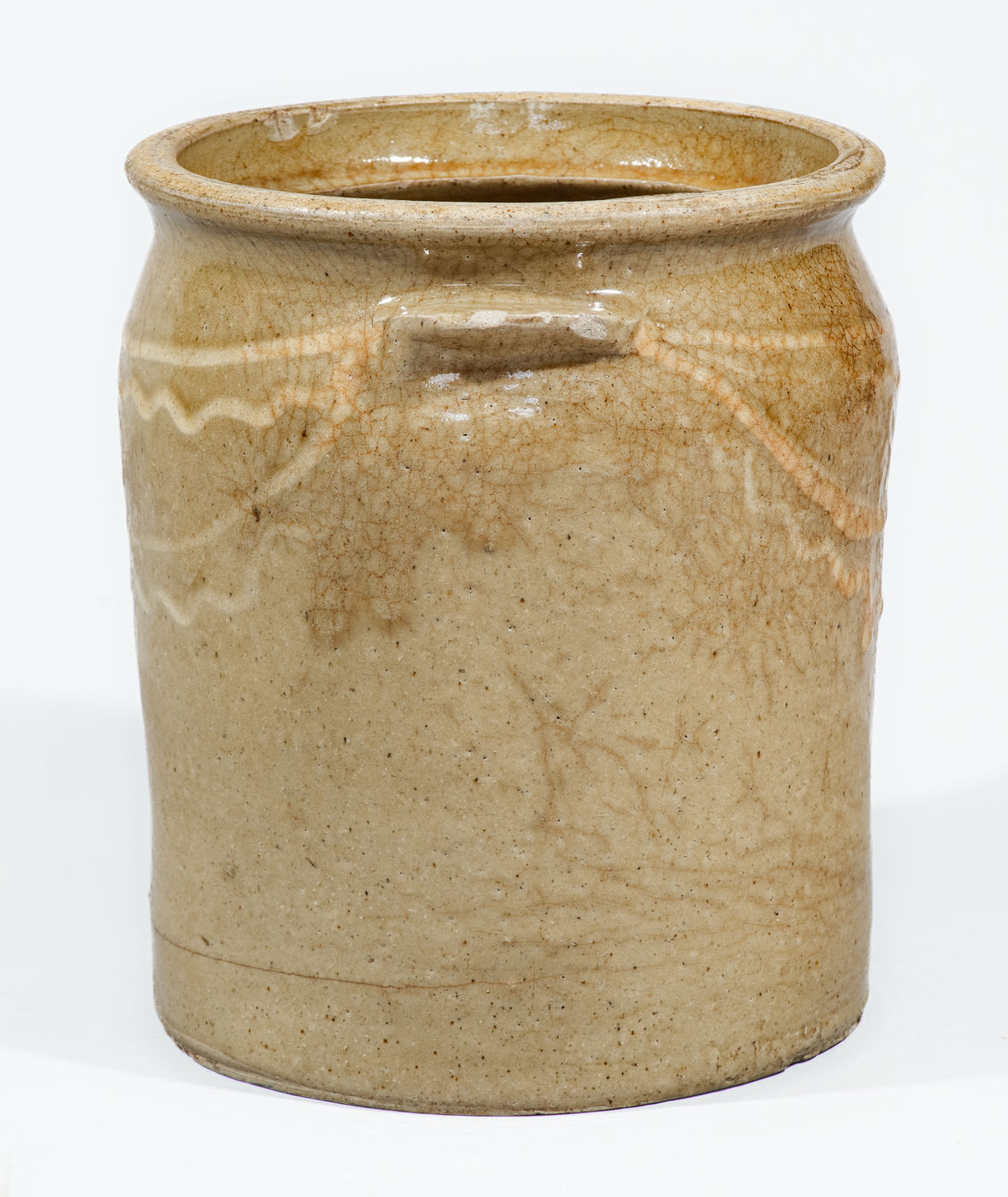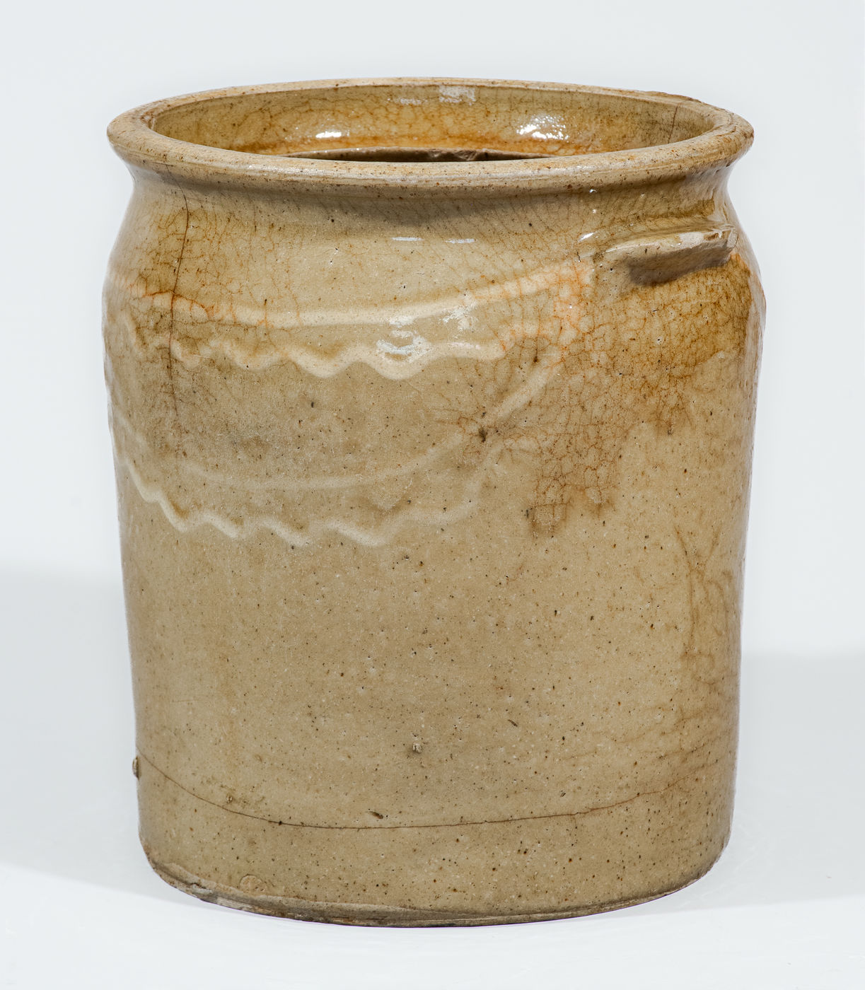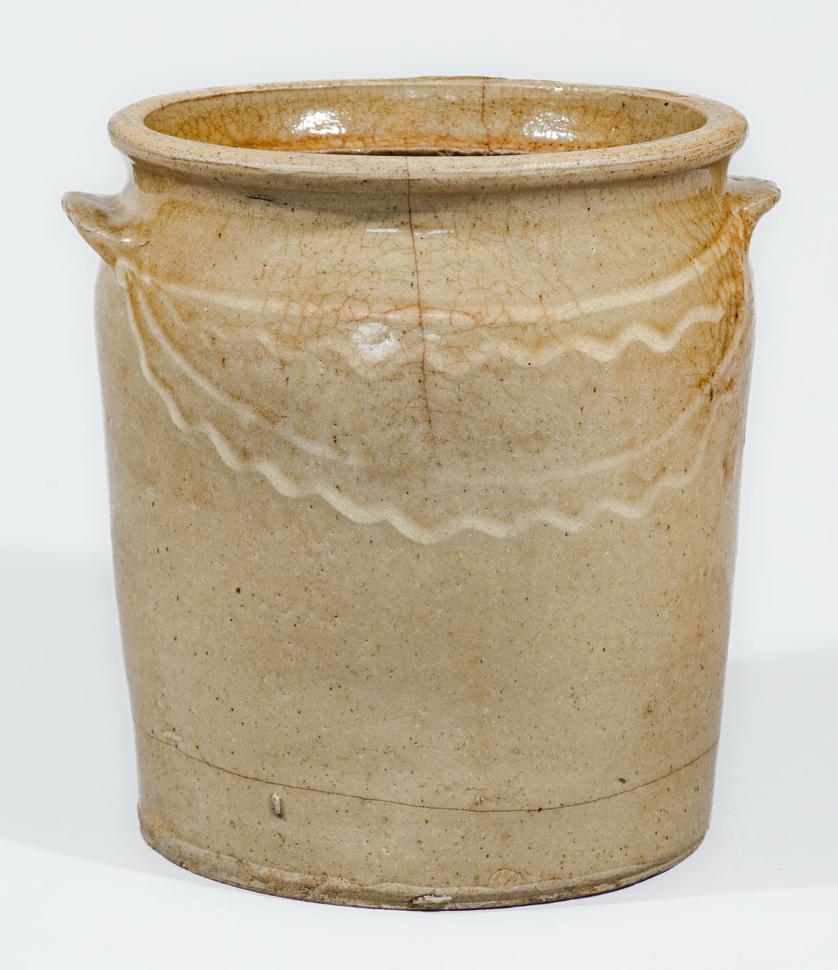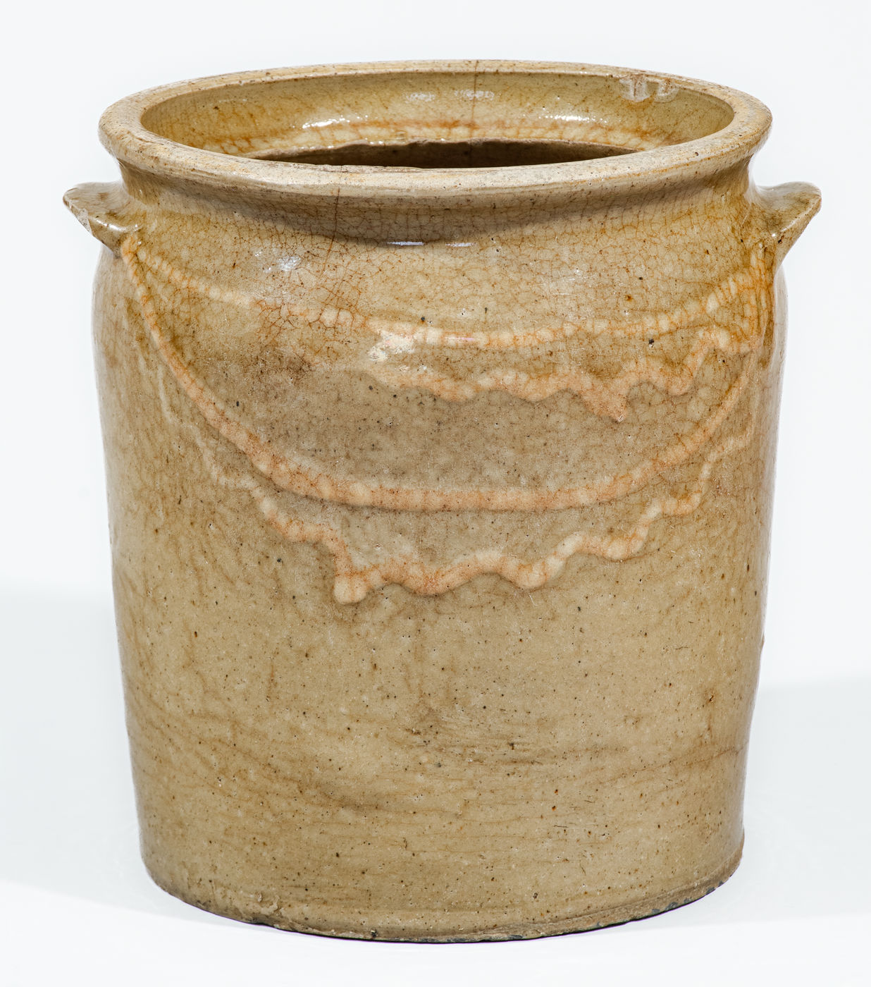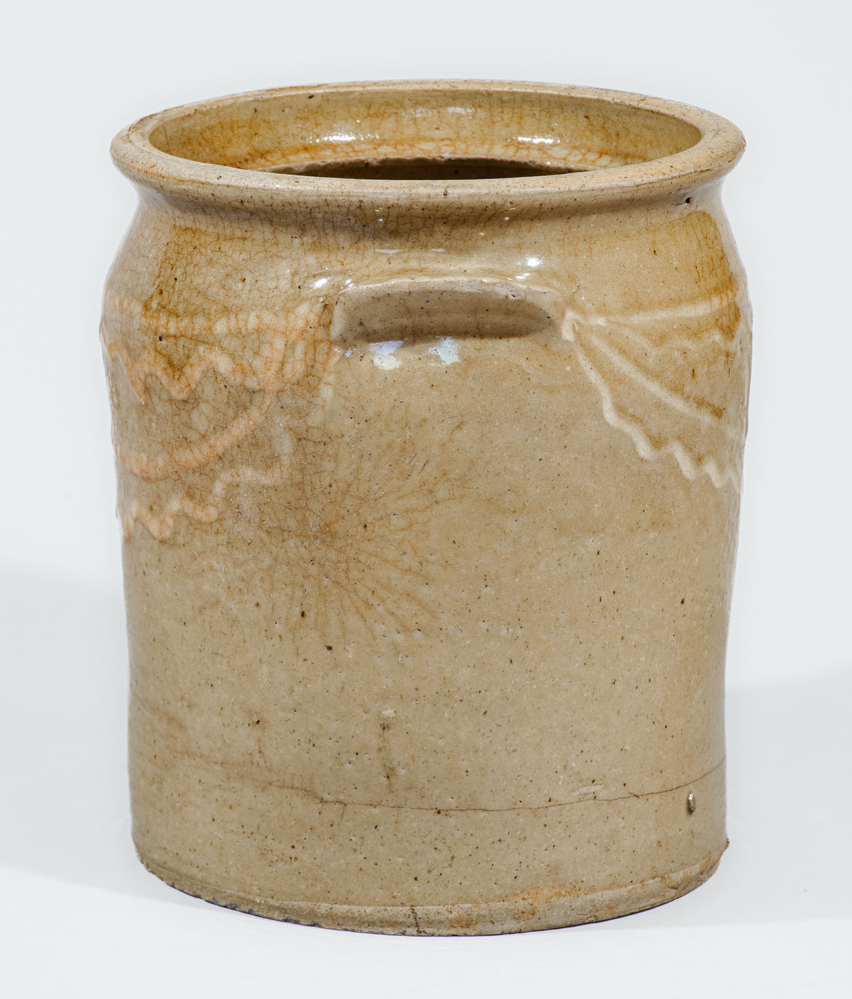 ×Rare Edgefield District, SC Stoneware Jar w/ Kaolin Slip Decoration, mid 19th century