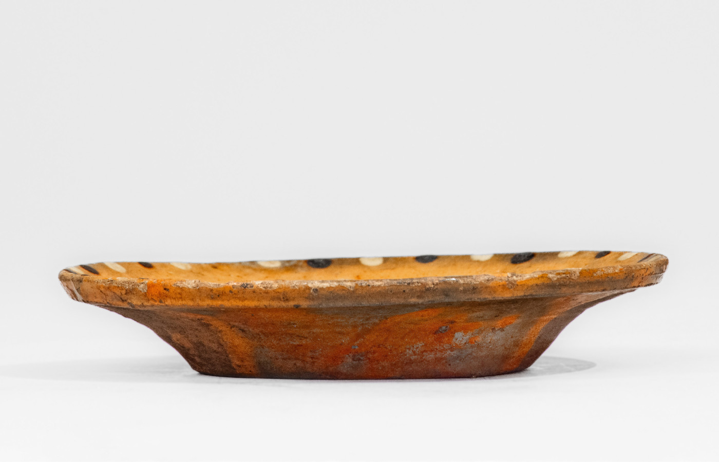 Glazed Redware Dish with Two-Color-Slip Decoration, Alamance County, NC origin, circa 1820-1850. Diam. 8 5/8" ; H 1 5/8".